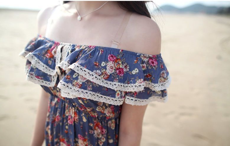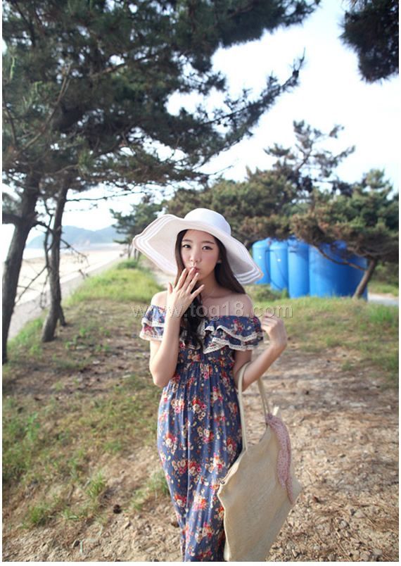 款式說明:流行的園田風碎花長裙.領口及腰間均加設彈力橡筋設計,可作露肩穿,實物花色與圖片毫無差異,夏日淑女風的必備款!!