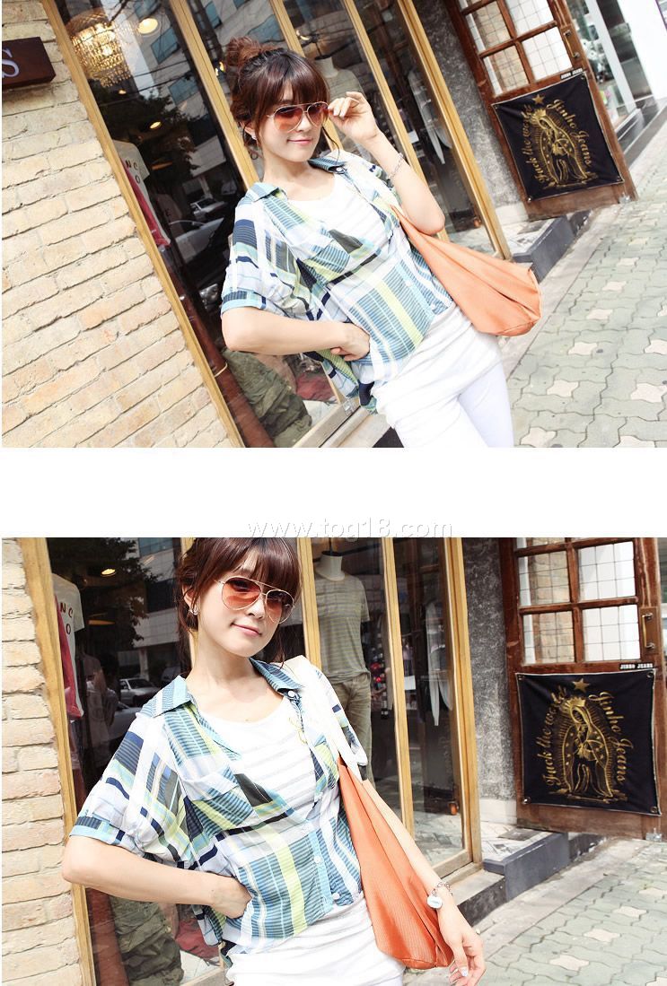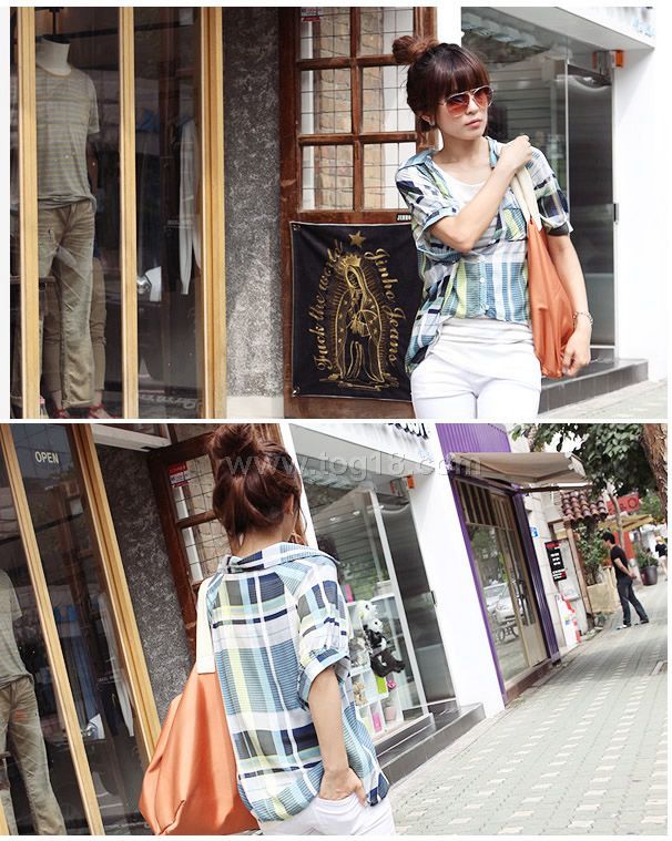 款式說明:簡潔休閒的格子襯衫,帥氣時尚的個性搭配,夏日必備的格子流行風,純棉面料,衣型設計中間短兩側長,版型獨特,均碼尺寸,一件不挑人穿的休閒襯衫.