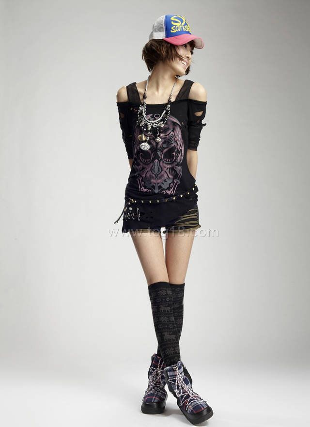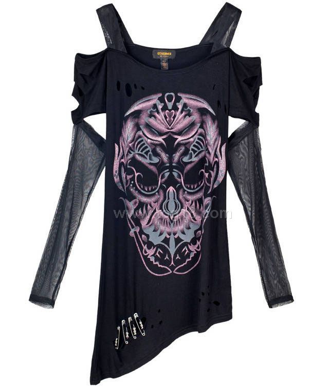 撕破性感骷髏朋克 搖滾風 破洞 t恤