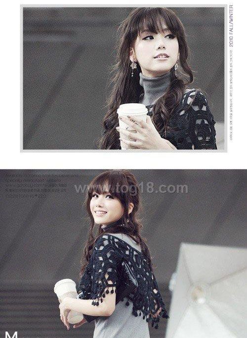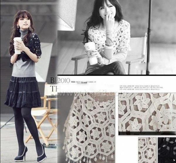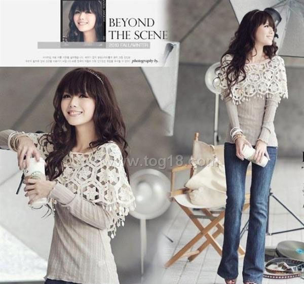 瑞麗2011新款 鏤空鉤花百搭時尚淑女披肩款針織衫 黑色 杏色