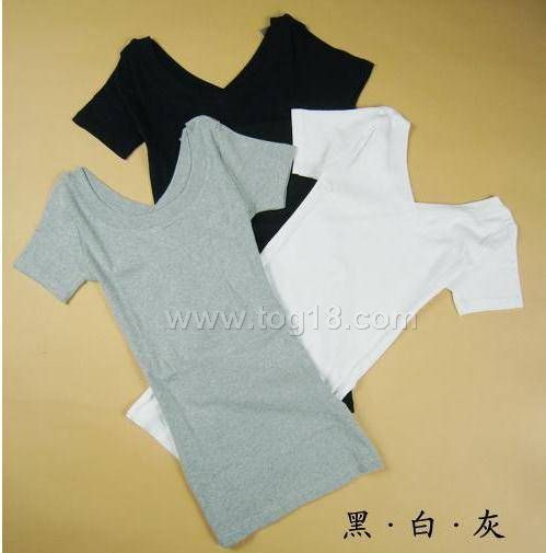 新版 爆款 UV領兩穿彈力修身長袖/短袖T恤 糖果色棉打底衫