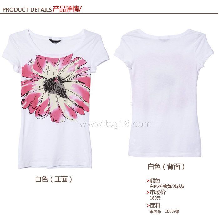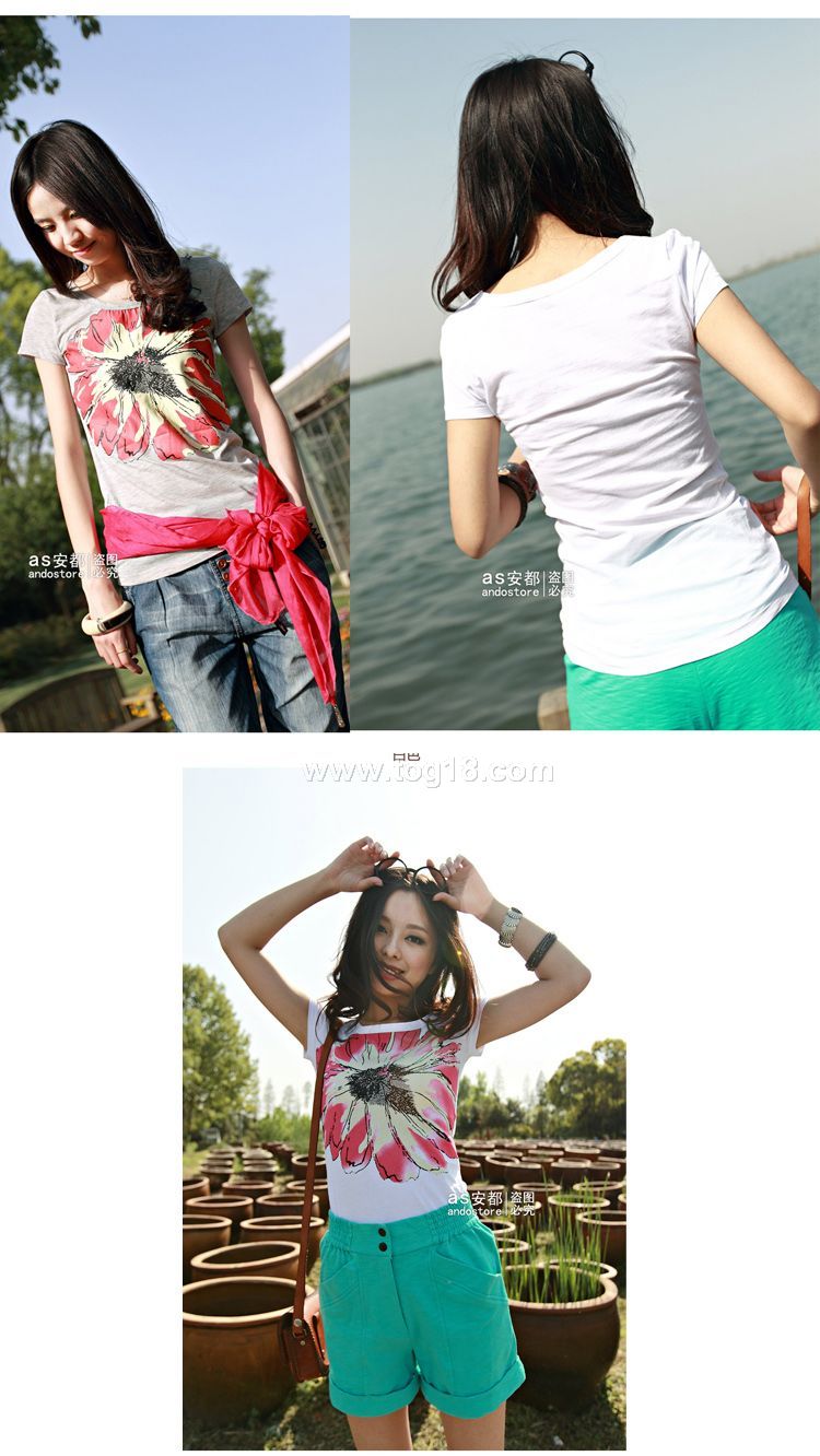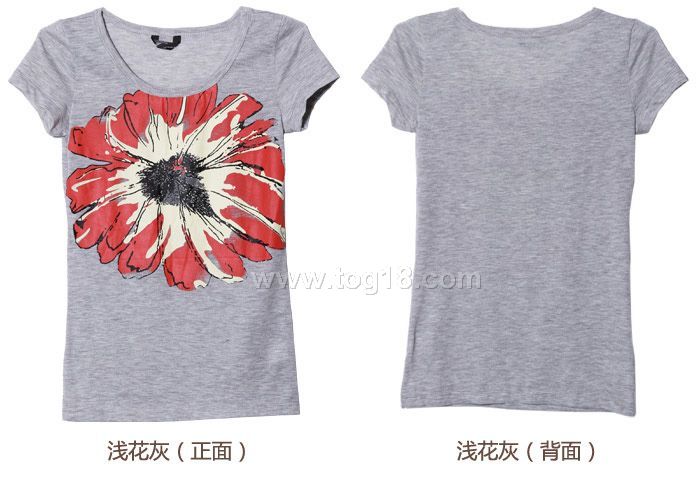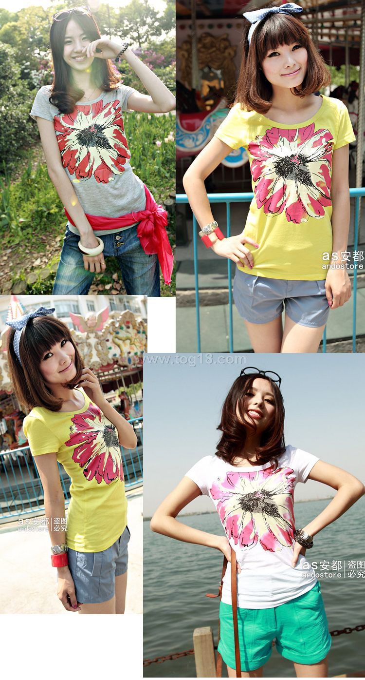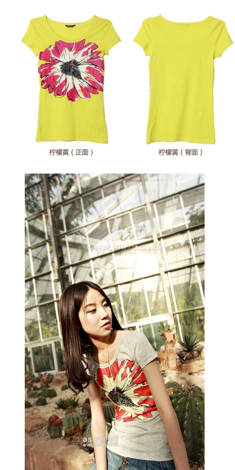 新品 夏 簡潔大氣花朵圖案印花短袖T恤