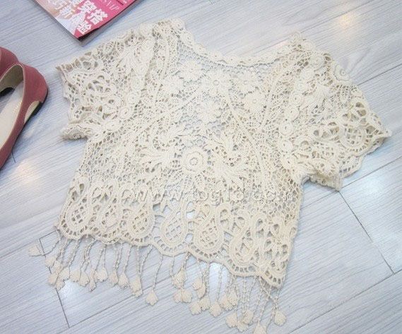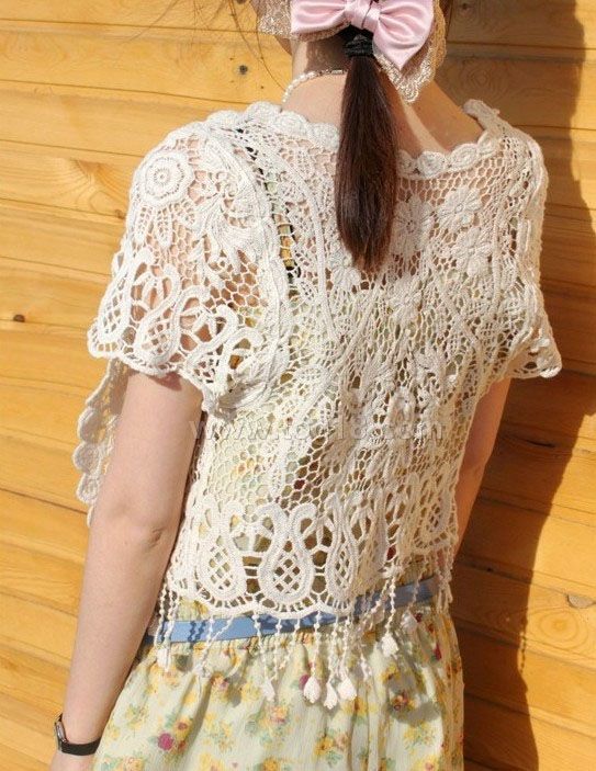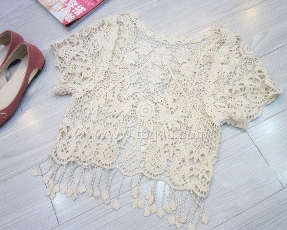 小淑女 短袖 流蘇 鏤空鉤花 小披肩