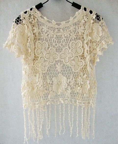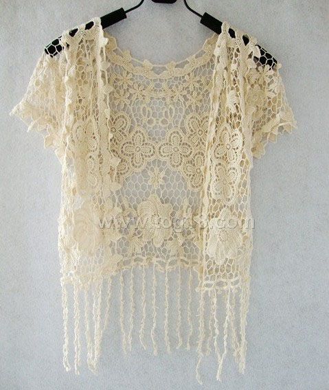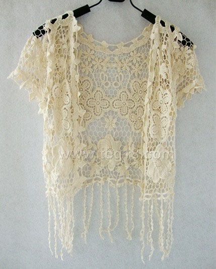 韓版淑女小外套 手工勾花流蘇短袖 小披肩外套