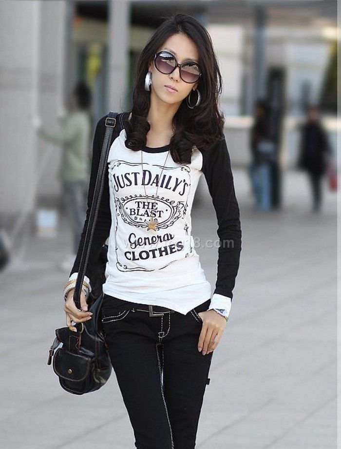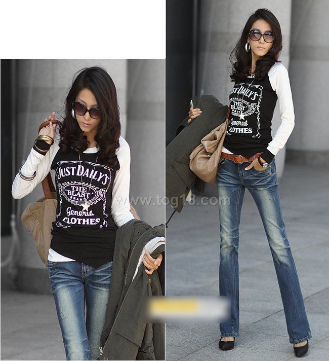 2011韓版圓領字母百搭 打底衫時尚短袖T恤 長袖以出貨