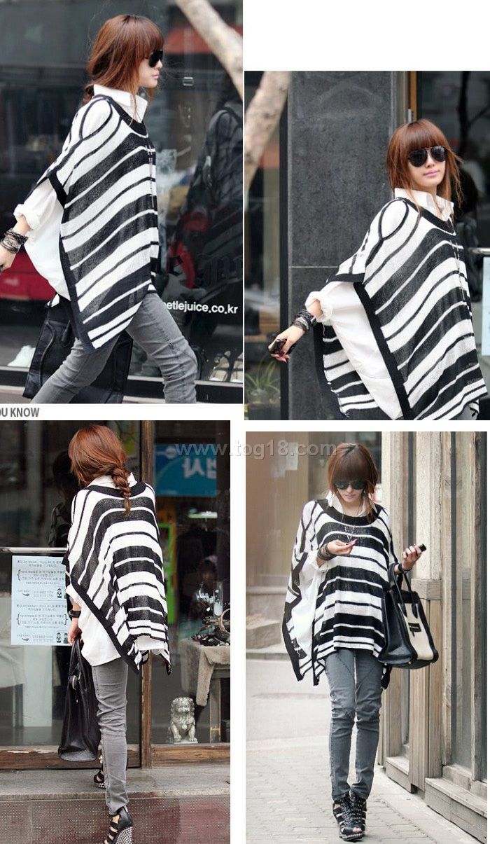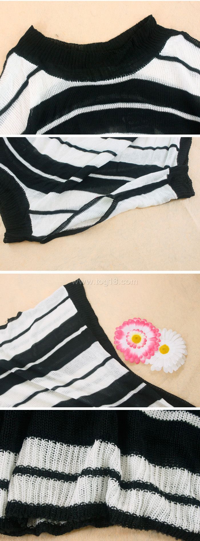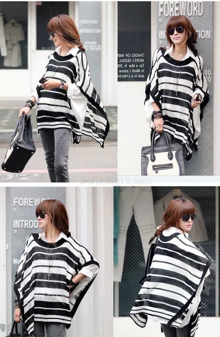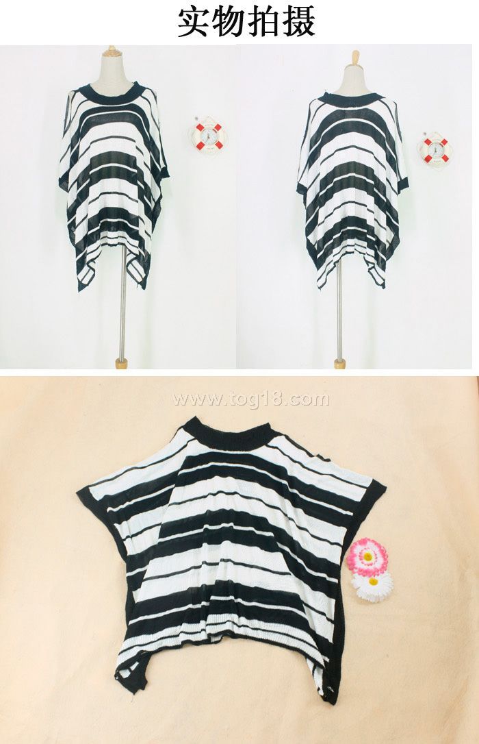 2011新品韓版人氣蝙蝠袖兩穿黑白條紋休閒毛衣罩衫