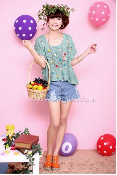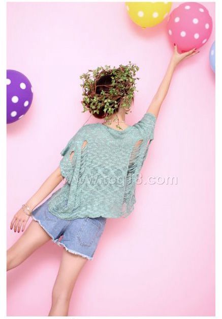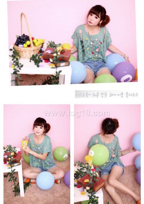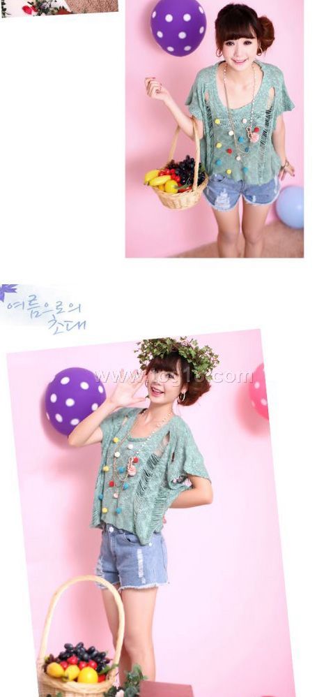 2011 秋新 圓領短袖彩色小球破洞乞丐鏤空性感寬鬆毛衣 罩衫