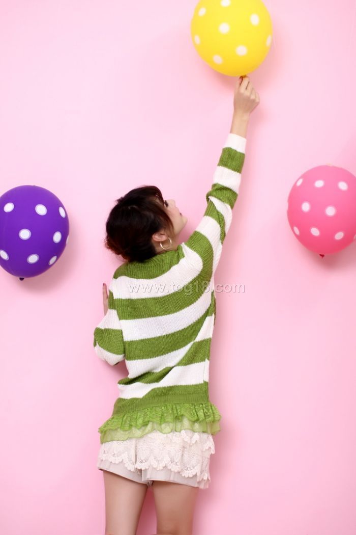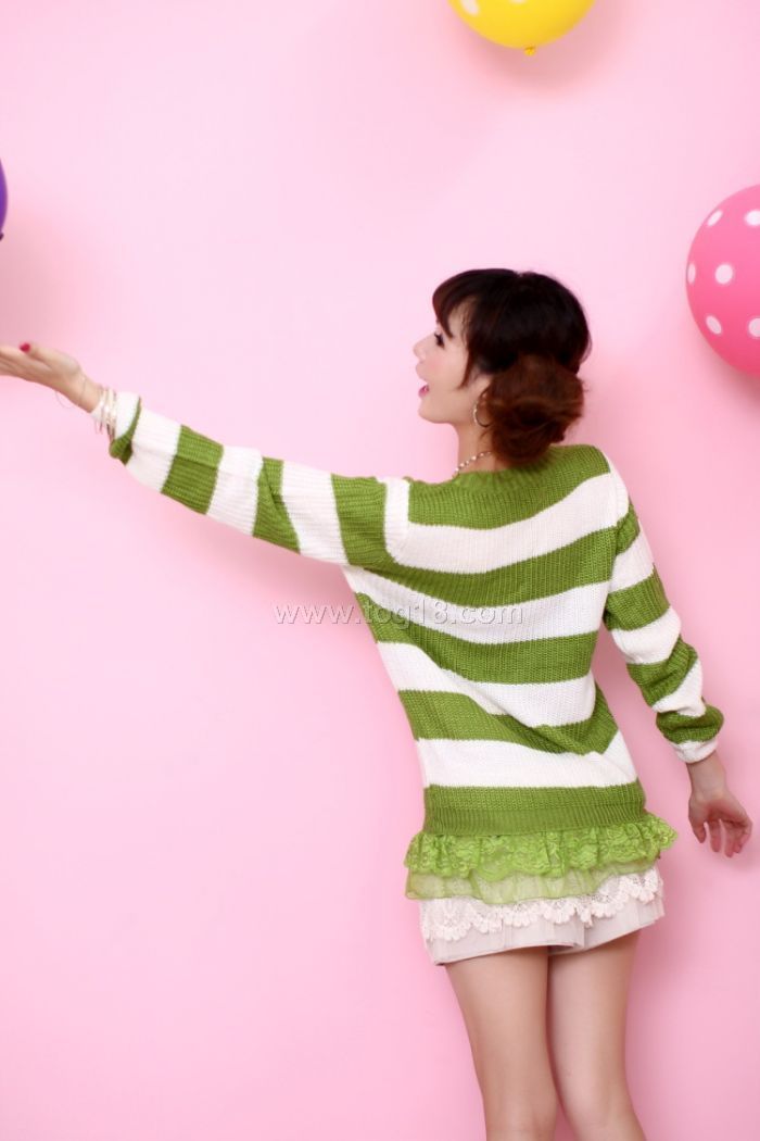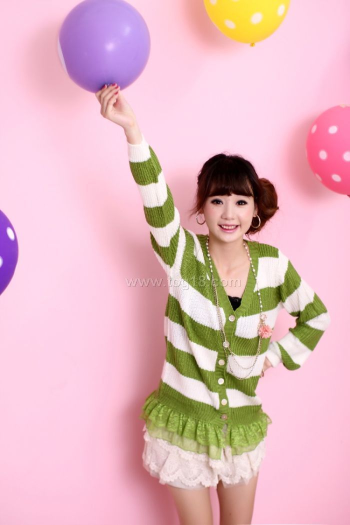 2011新款韓版淑女毛衣 時尚 條紋 長袖 蕾絲 開衫