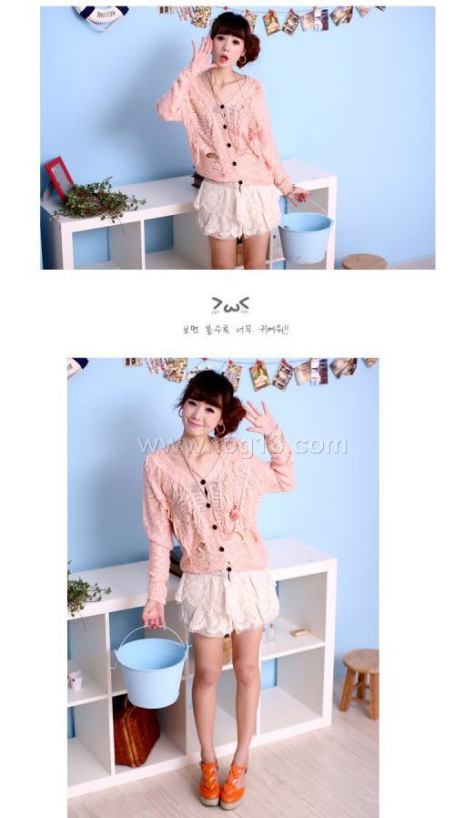 2011新款秋裝熱銷百搭琉璃梳破洞針織長袖寬鬆毛衣開衫外套