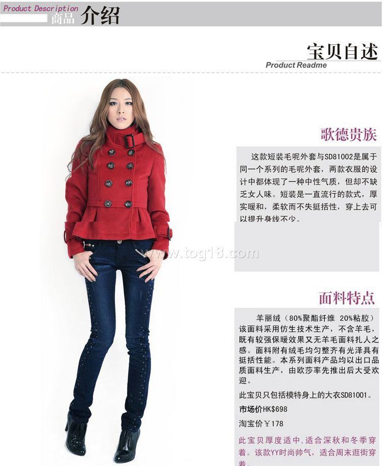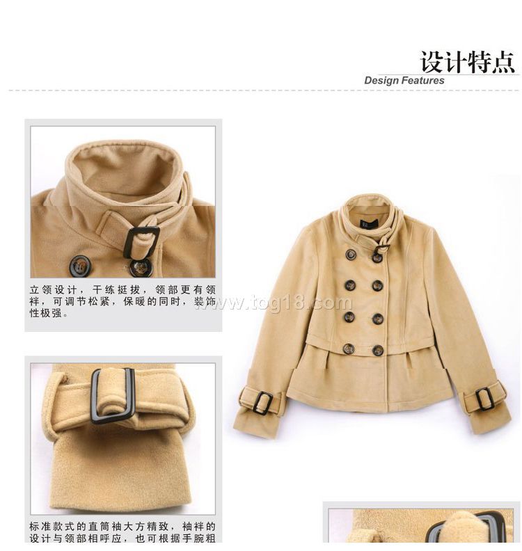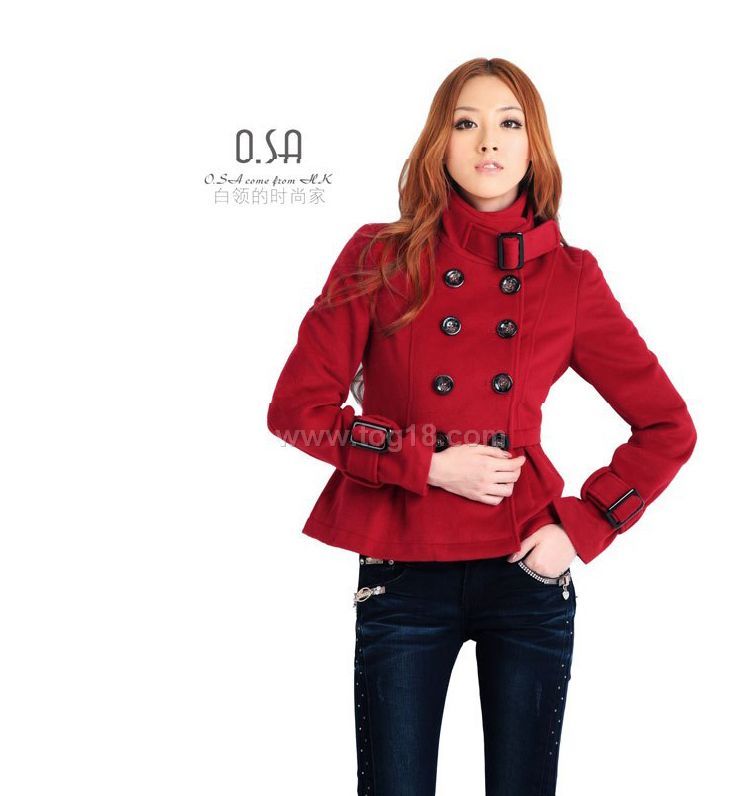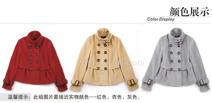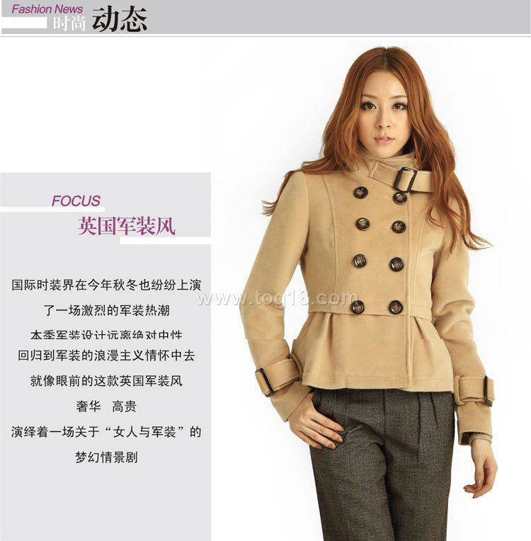 2011秋冬款 韓版雙排扣收腰毛呢大衣