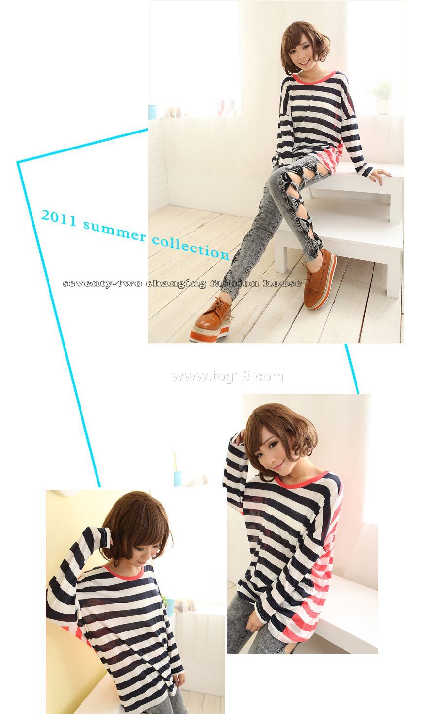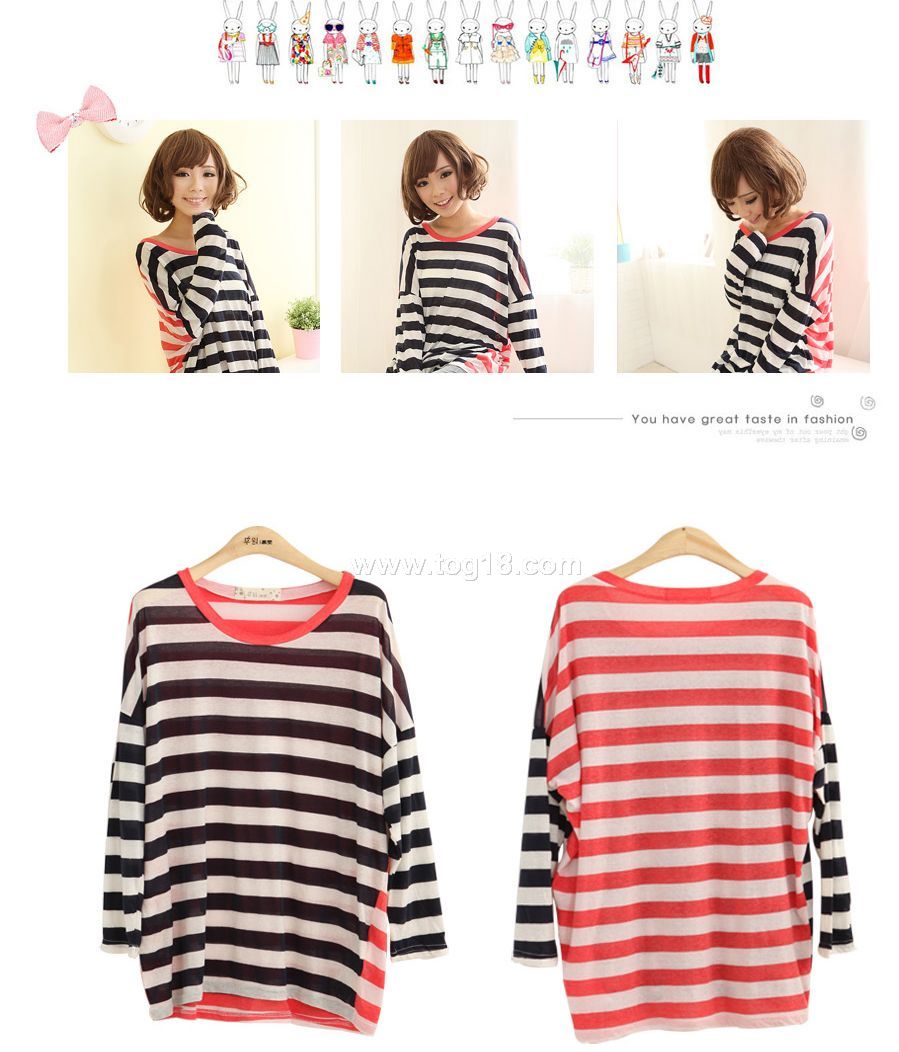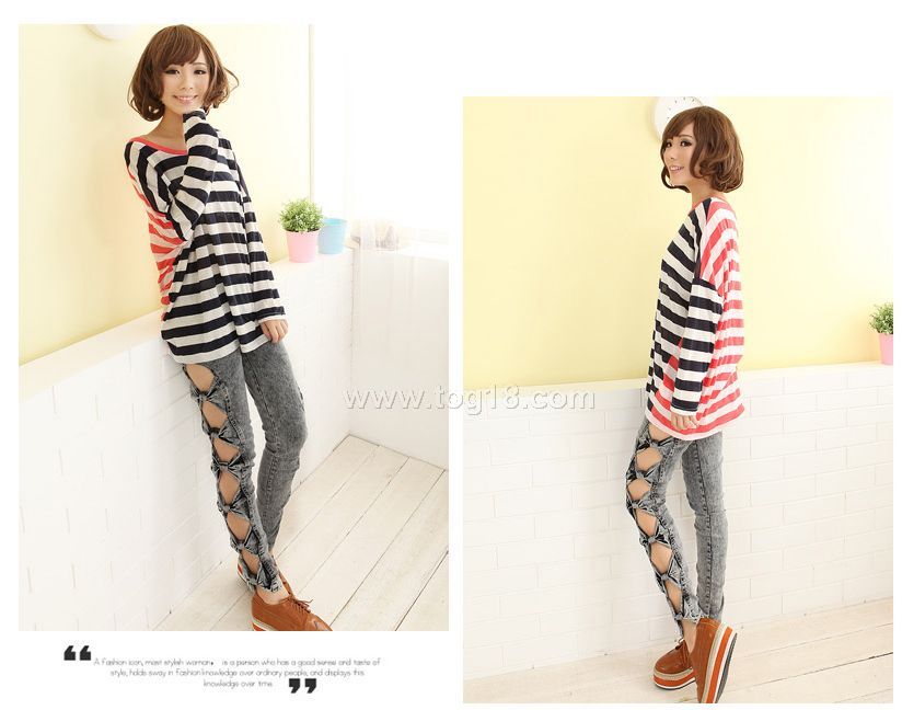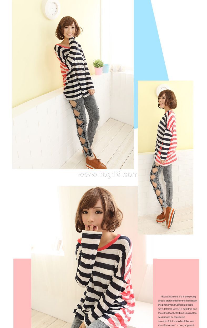 2011新品秋裝 個性條紋長袖T恤