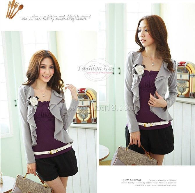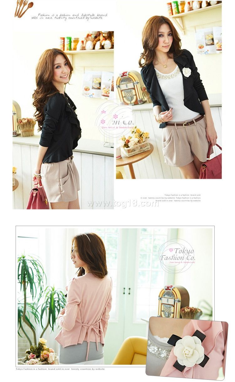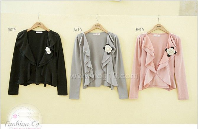 雪紡領花朵氣質開衫山茶花雪紡波浪外套 送花朵