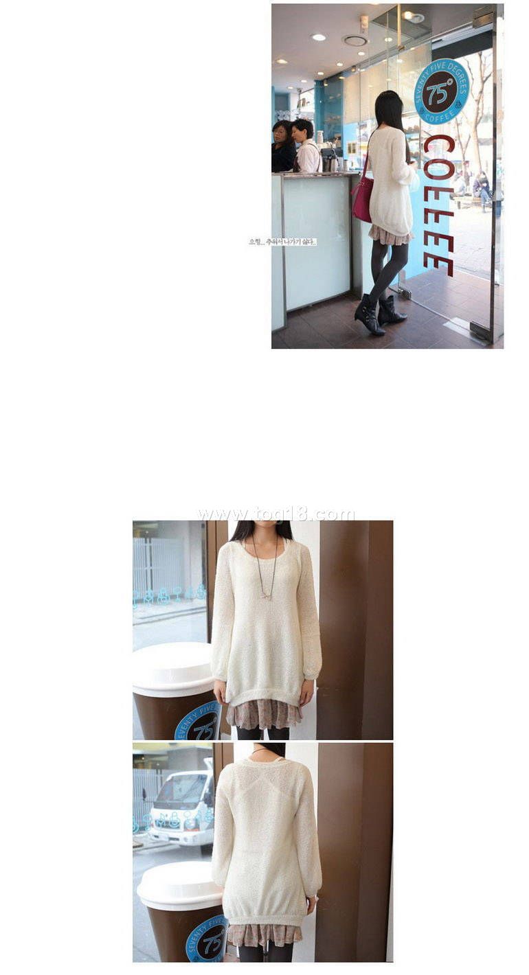 流行風韓版真二件套雪紡裙擺針織衫.裡面吊帶純白