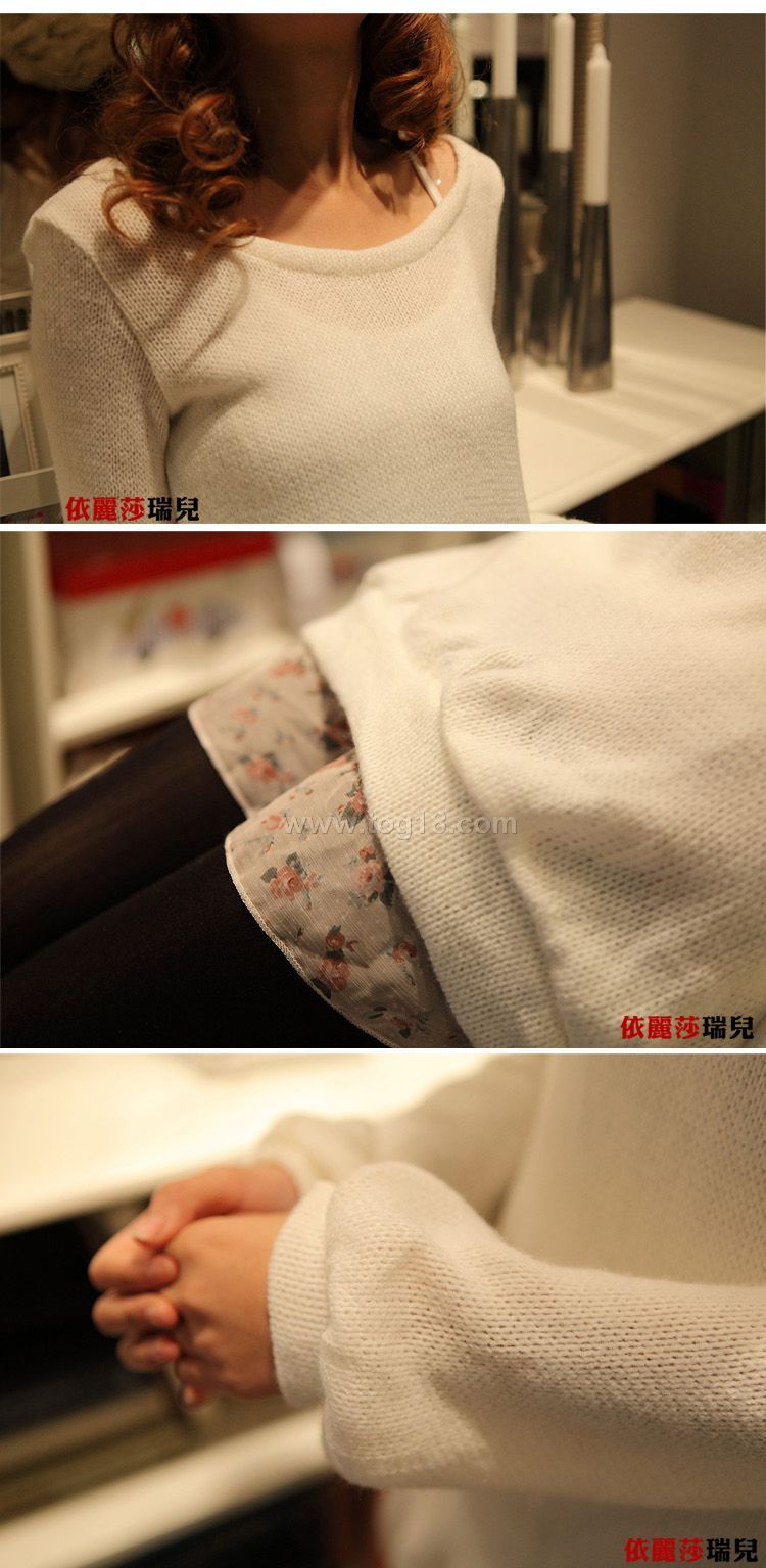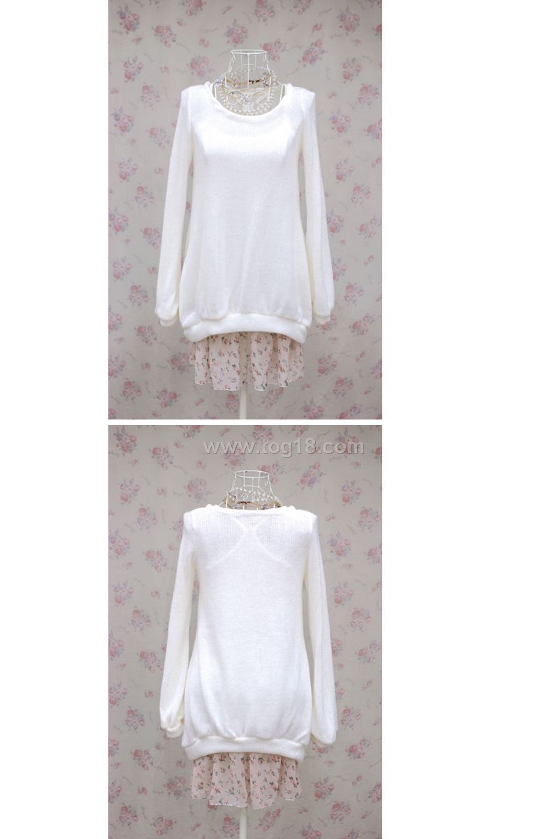 韓版針織長袖毛衣兩件套雪紡碎花 春秋冬 連衣裙