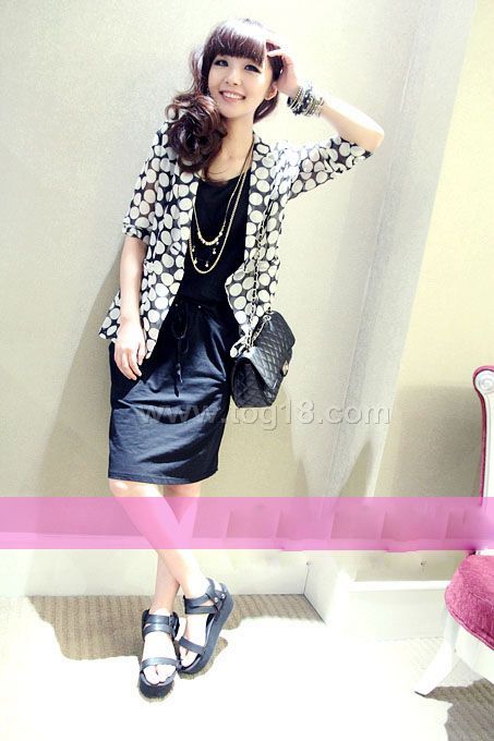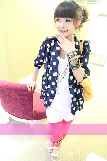 2011最新秋款韓國波點雪紡外套