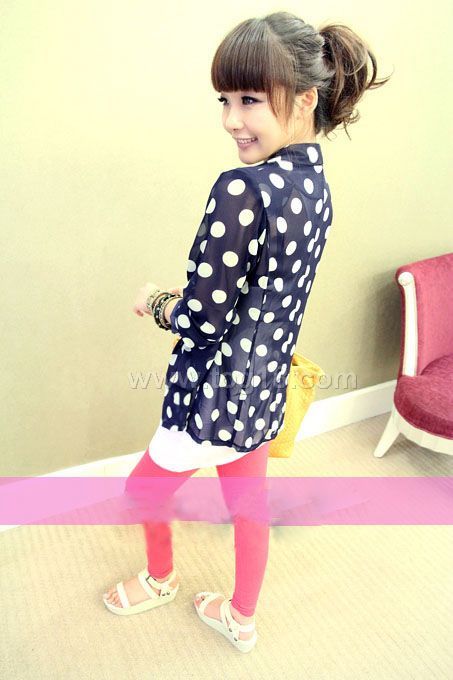 • 2011最新秋款韓國波點雪紡外套