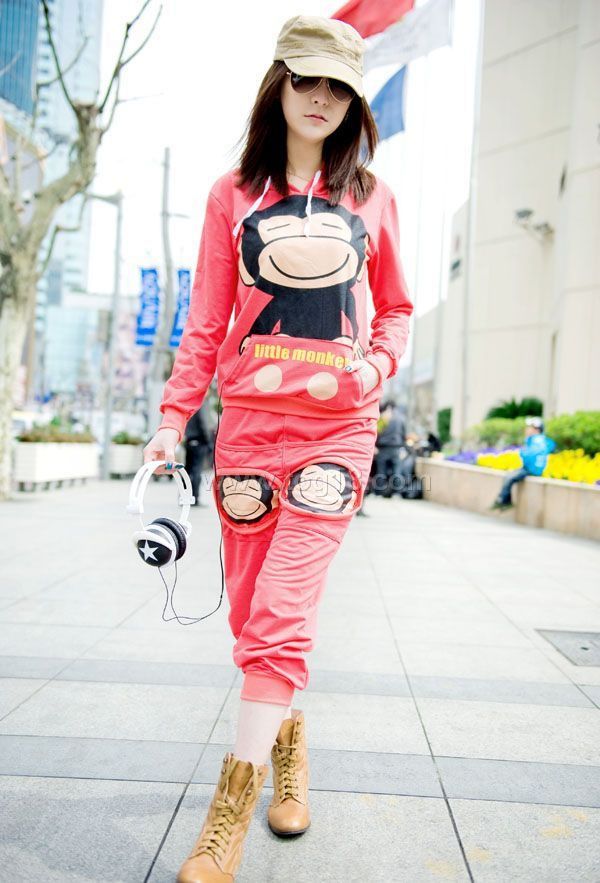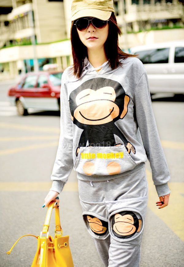 2011新款 休閒可愛長袖連帽卡通大嘴猴衛衣套裝