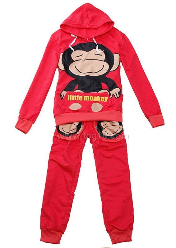 • 2011新款 休閒可愛長袖連帽卡通大嘴猴衛衣套裝