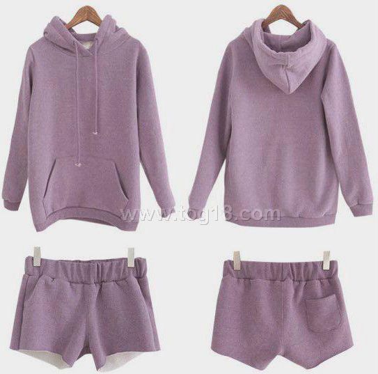 春秋冬新款韓版女休閒運動抓絨加厚帽衫 連帽衛衣+短褲套裝