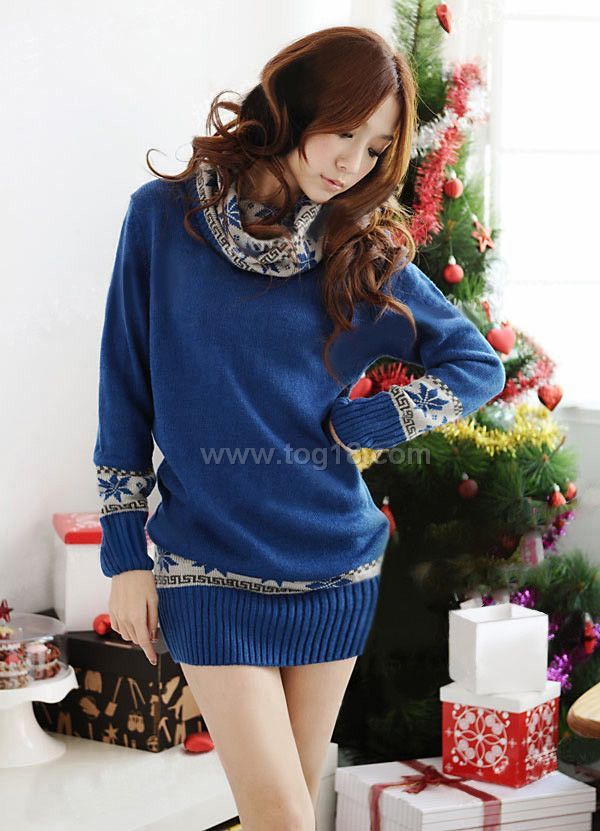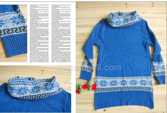 新款高領翻領雪花長款毛衣