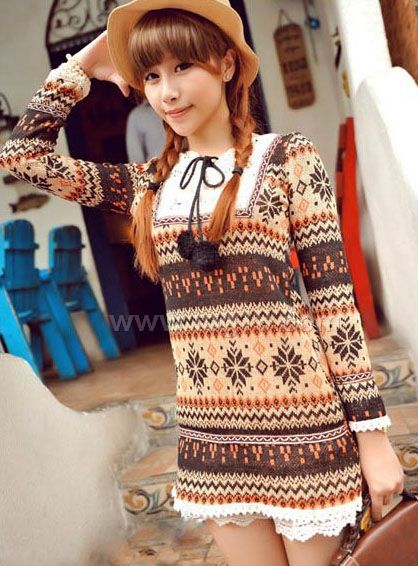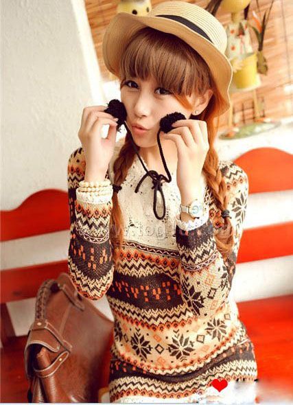 韓版甜美毛線球球針織連衣裙