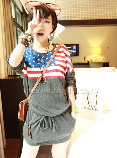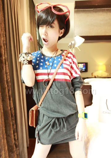 街頭感 好品國旗圖案 運動收腰連衣裙