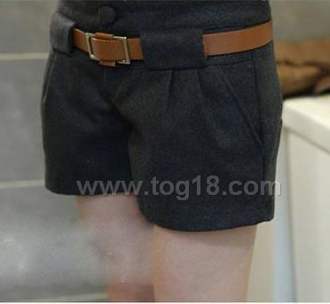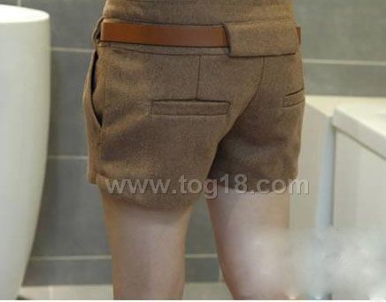秋冬新款 顯瘦版型呢料短褲靴褲 送皮帶
