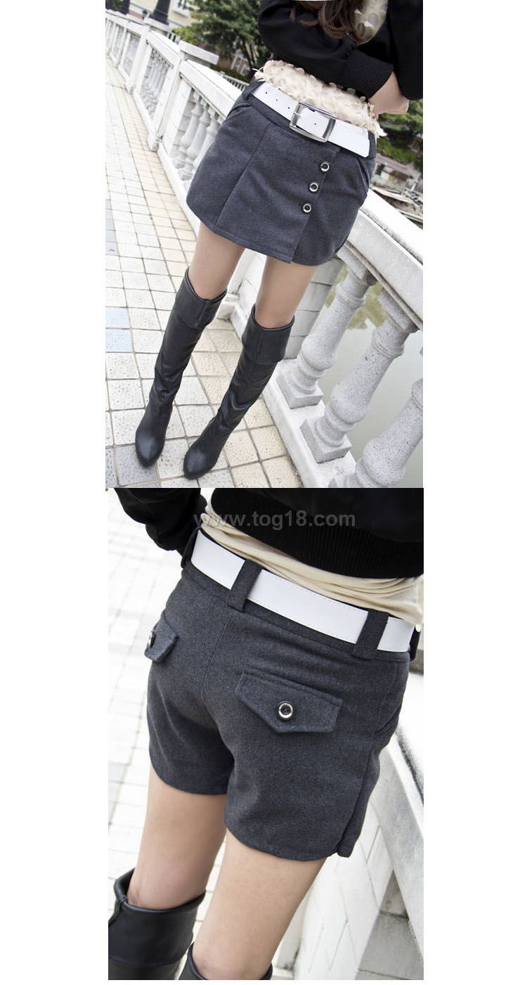 韓版2011秋冬 女毛呢裙褲帶腰帶百搭大碼靴褲/短褲 秋冬 女