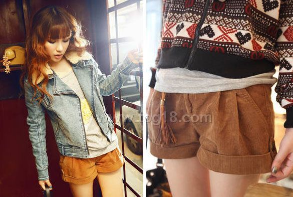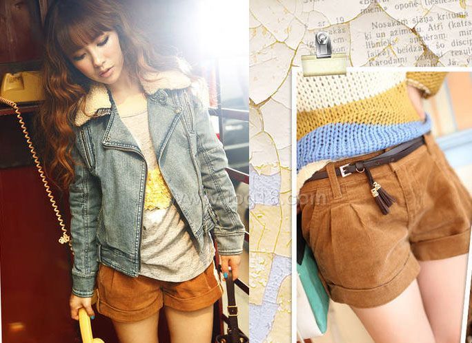 獨家發售 顯瘦百搭 駝色折邊皺褶短褲*靴褲