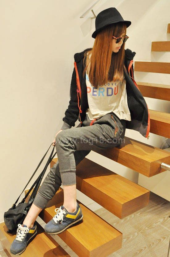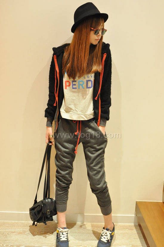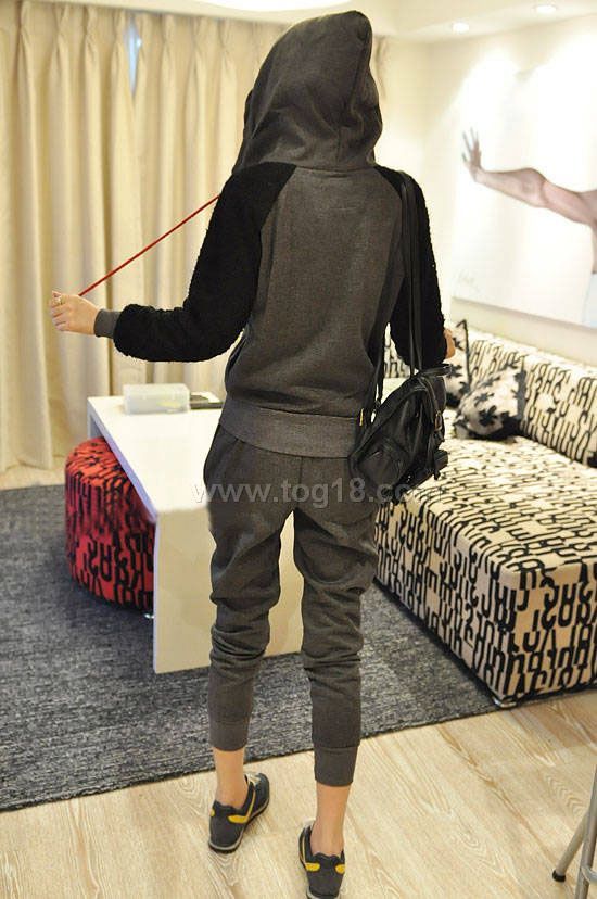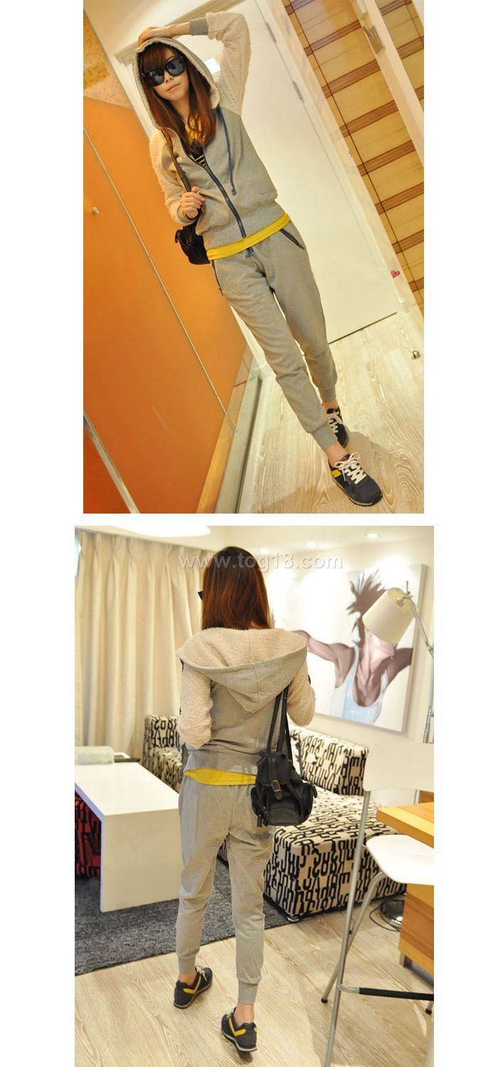 新款秋冬裝絕對質量!拼色拼接抓絨運動套裝2色