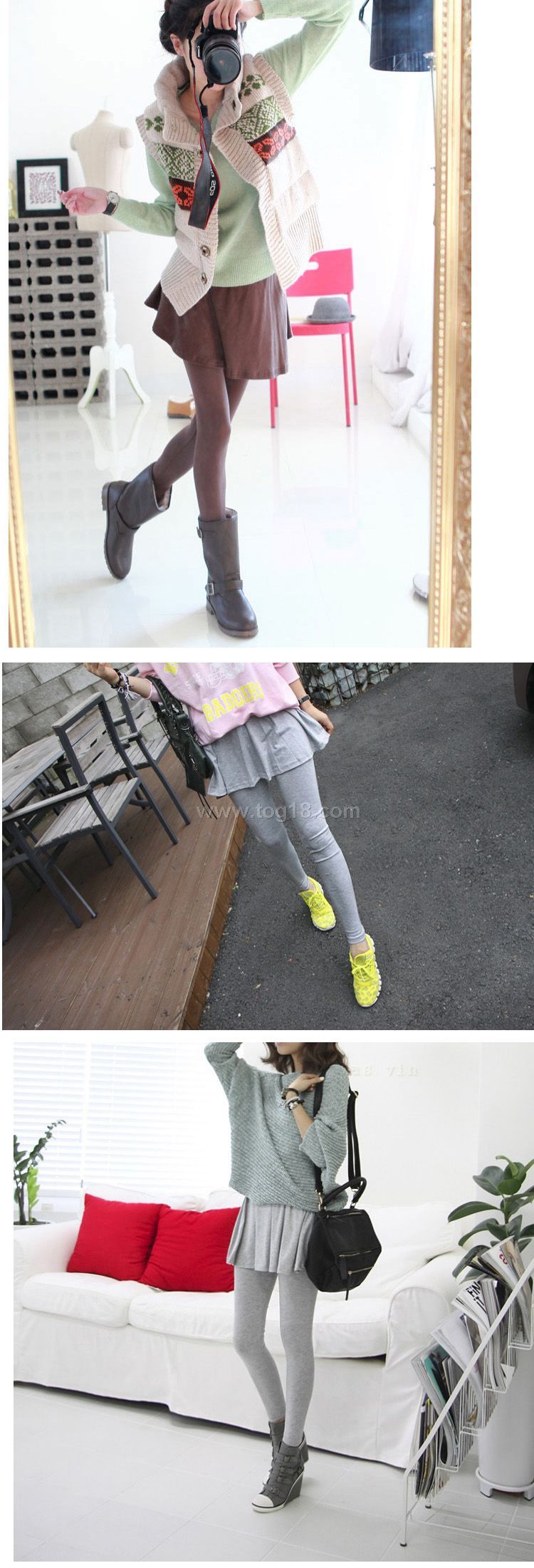 款式說明:今季最流行的假兩層打底褲,既可外穿,厚度適中,超彈力質材,時尚個性,三色選擇,秋冬人手必備.