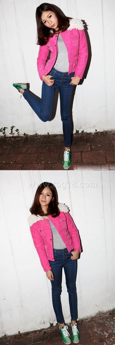 2011 秋冬 立體平行線裁剪 排扣牛仔小腳鉛筆褲