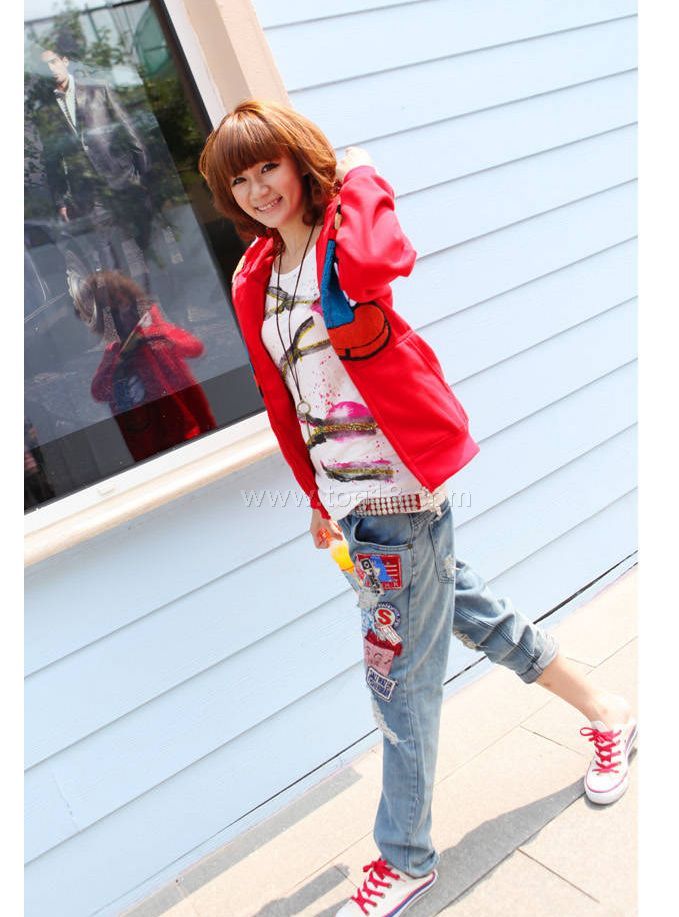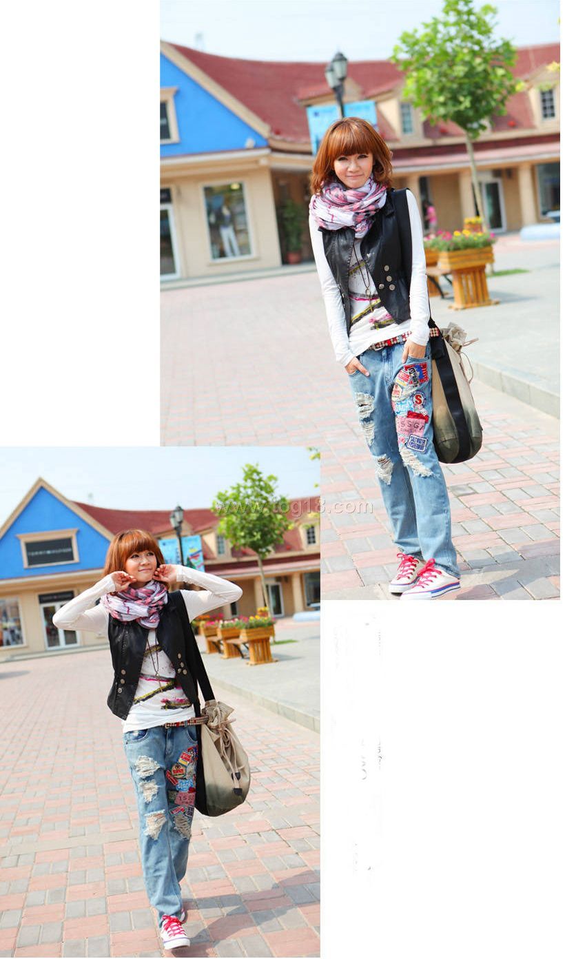 2011 韓版系列破洞帶勳章徽章牛仔褲跨褲