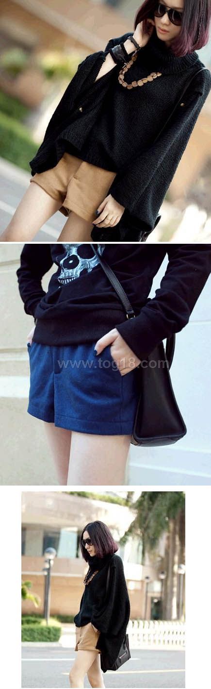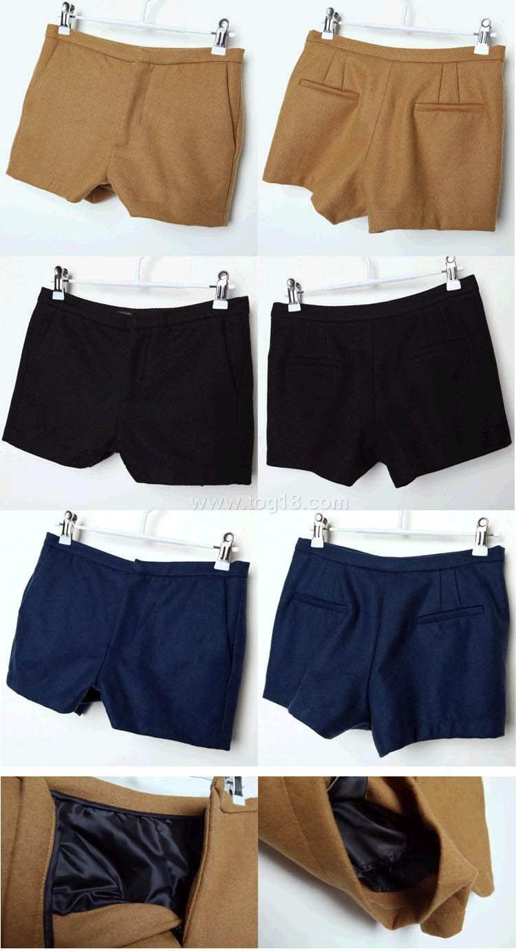 復古新貴時尚簡約街風多色插兜呢子短褲