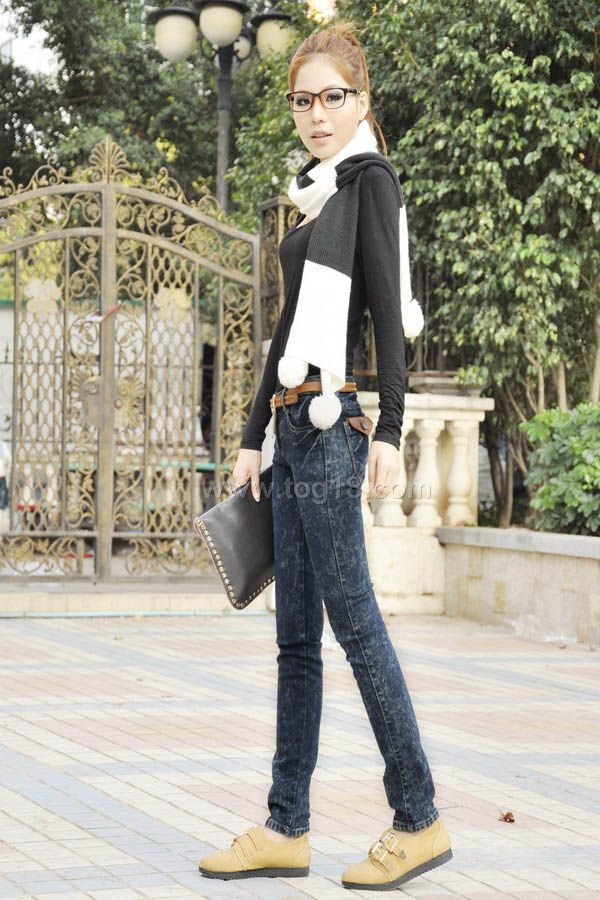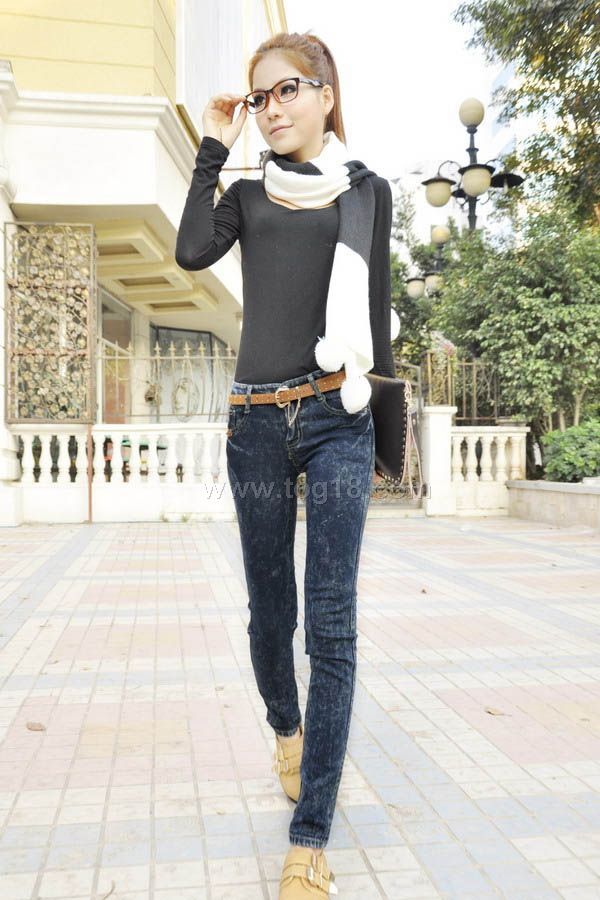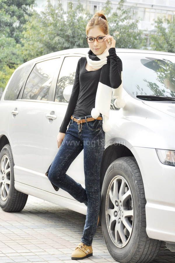 最潮流韓版風格水洗女士牛仔褲 長褲送腰帶