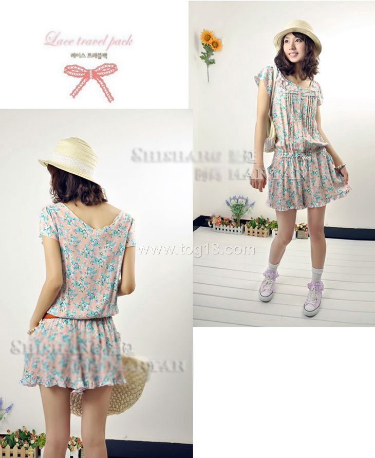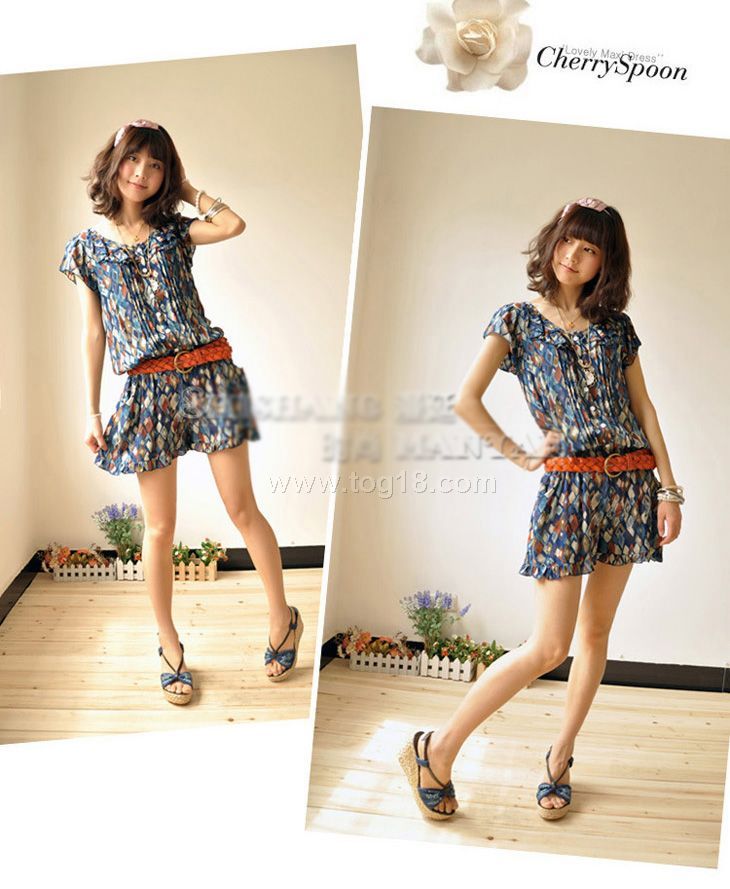2012春裝新款歐美原單荷葉邊碎花 短褲 連衣褲
