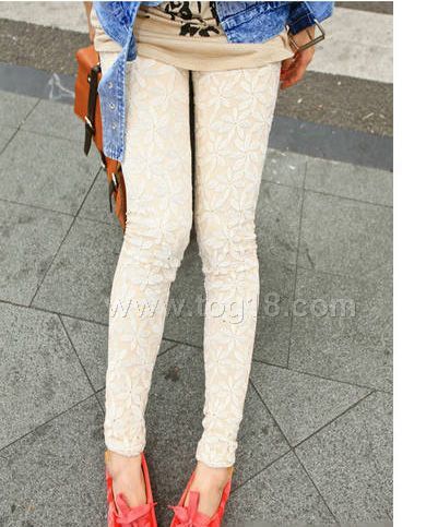 時尚百搭 鄒菊式蕾絲花朵打底褲