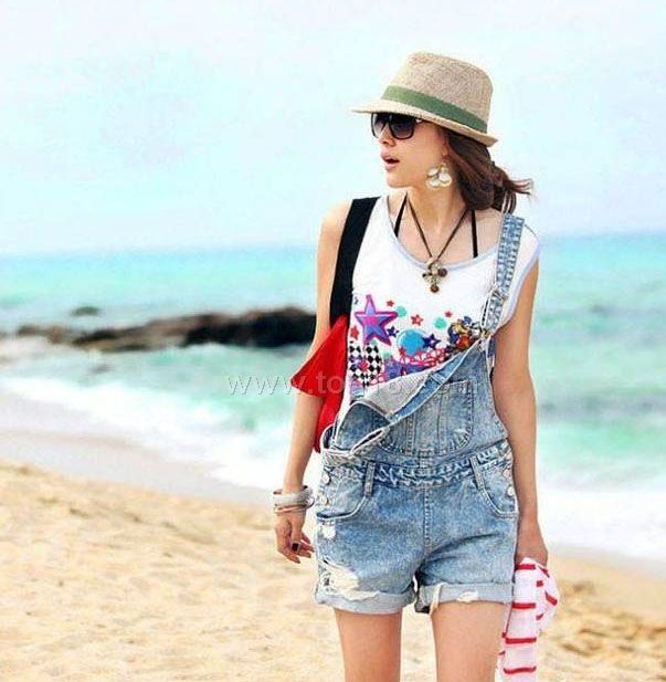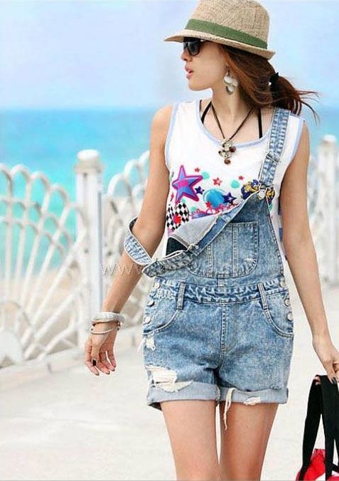 2012新款韓版潮女可愛牛仔短褲熱褲子寬鬆大口袋牛仔背帶褲