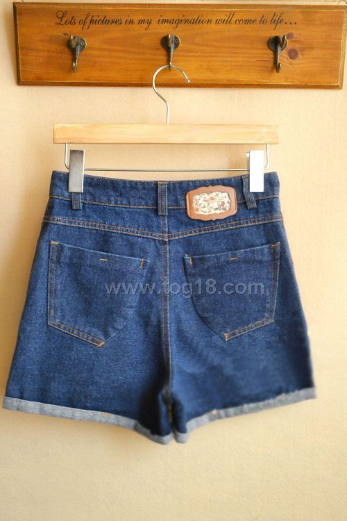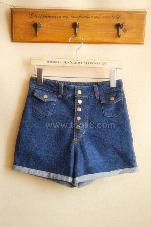 2012新款復古休閒高腰牛仔短褲靴褲按扣