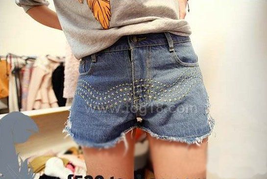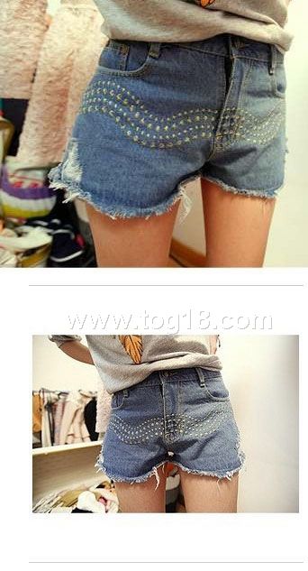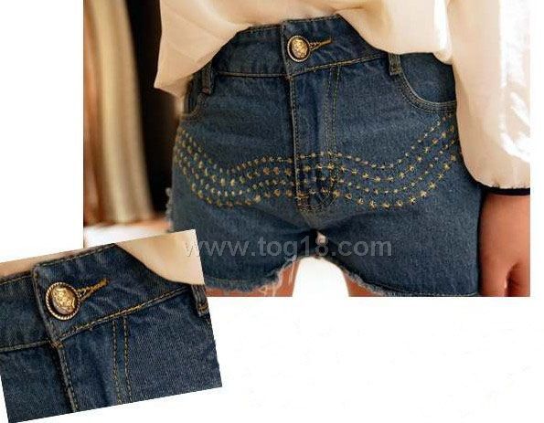 2012新款做舊刺繡小波浪毛邊牛仔熱褲
