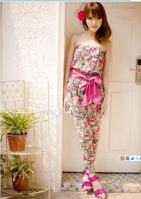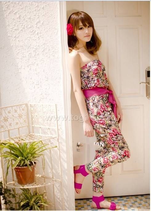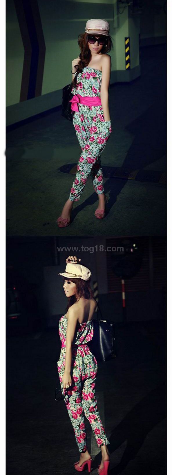 2012新款 歐美風復古玫瑰碎花抹胸連體褲