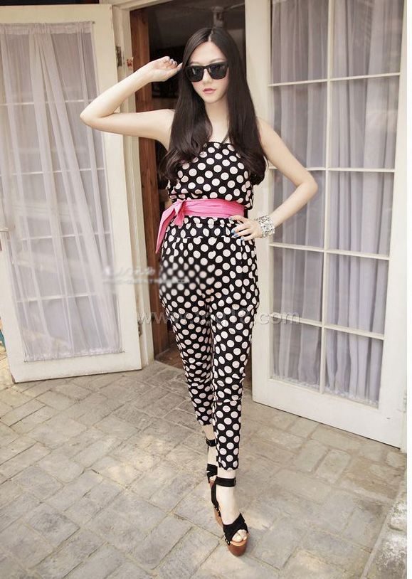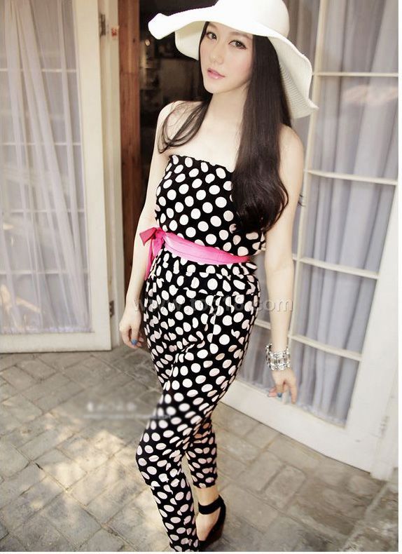 2012新款 甜美抹胸波點圓點連體褲
