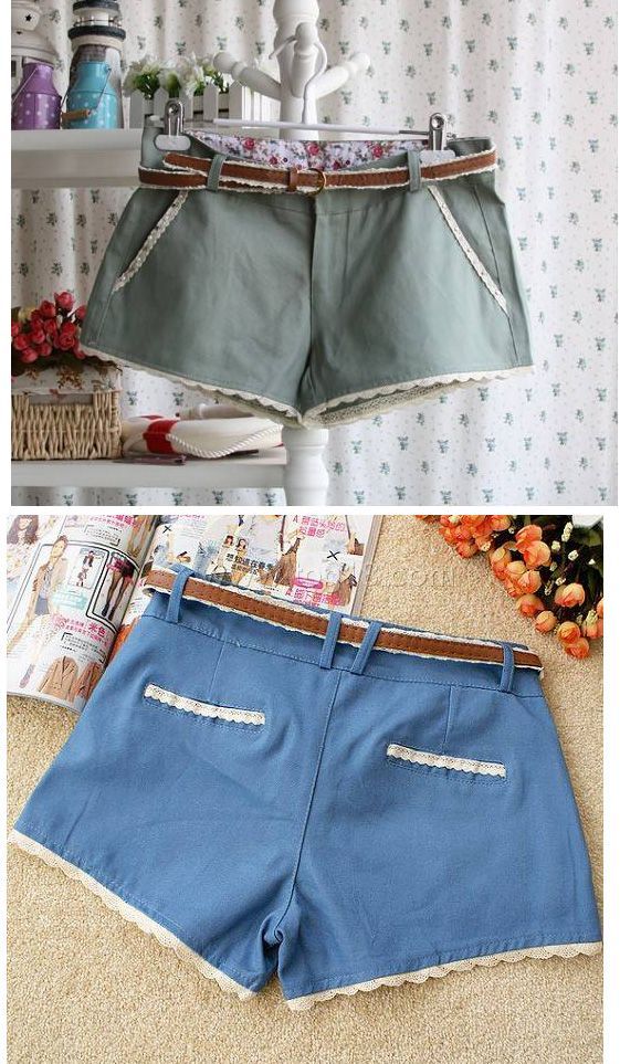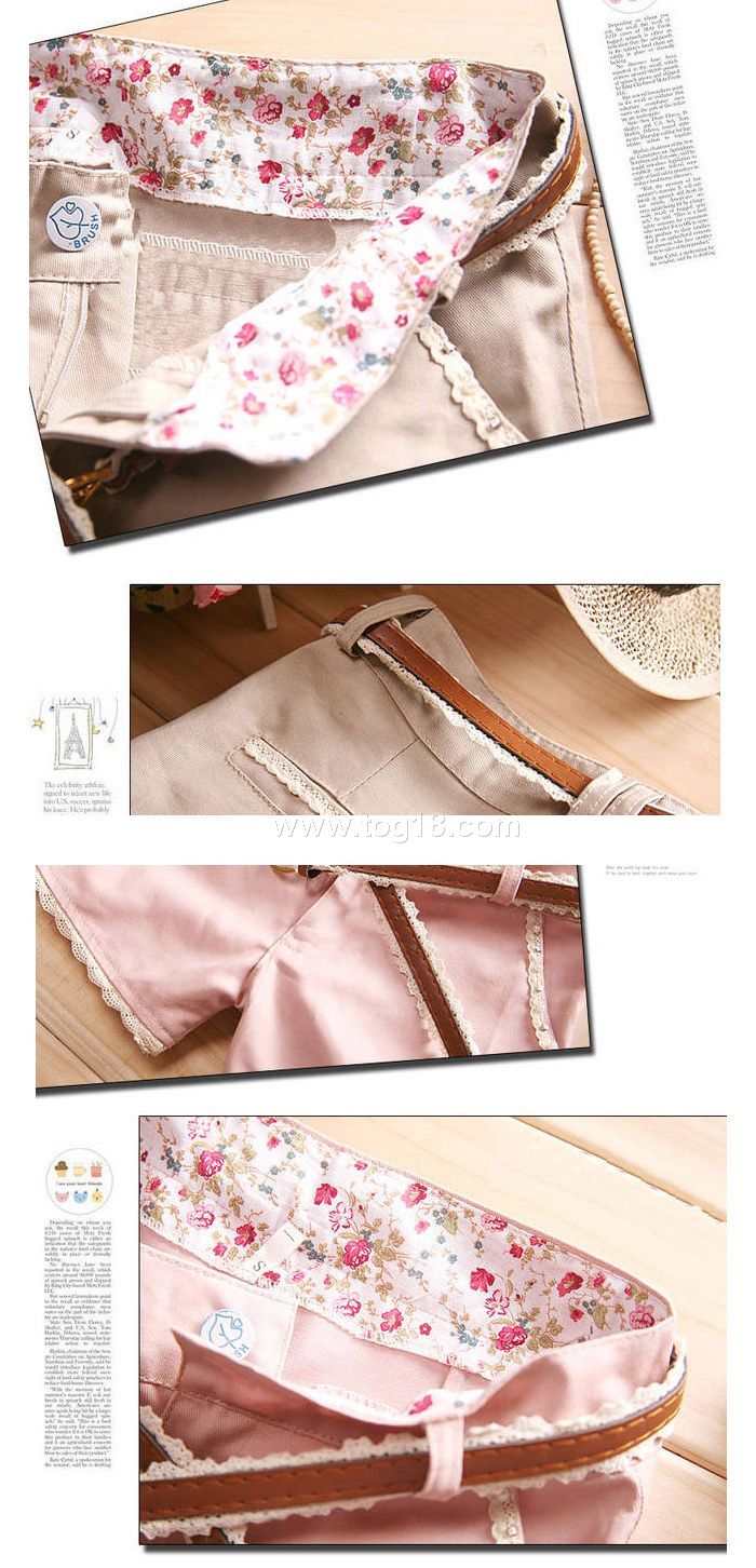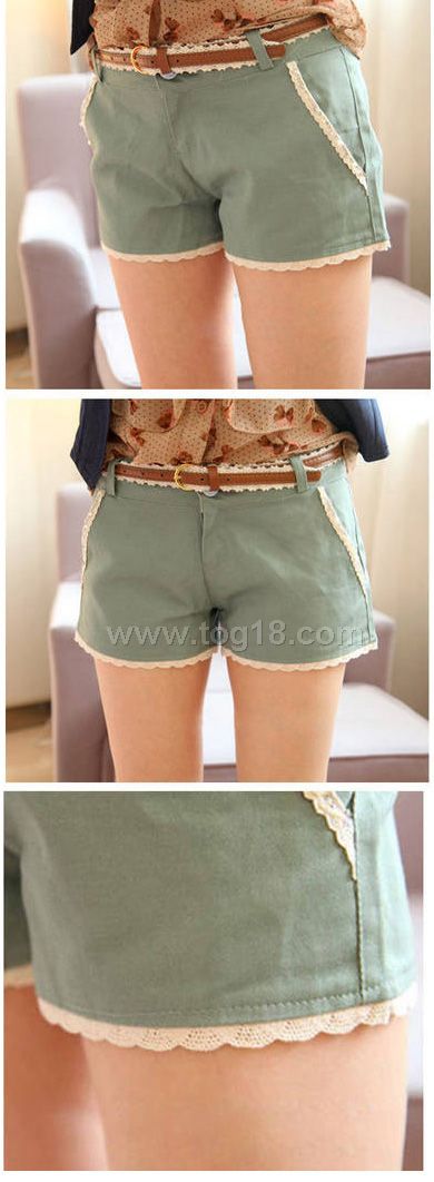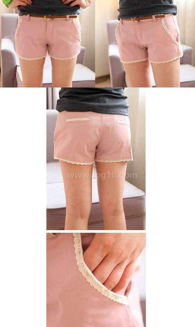 2012春夏新款 韓版夏裝附布蕾絲腰帶甜美低腰熱褲短褲(送腰帶)