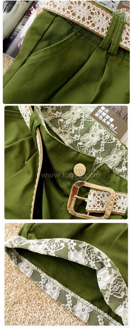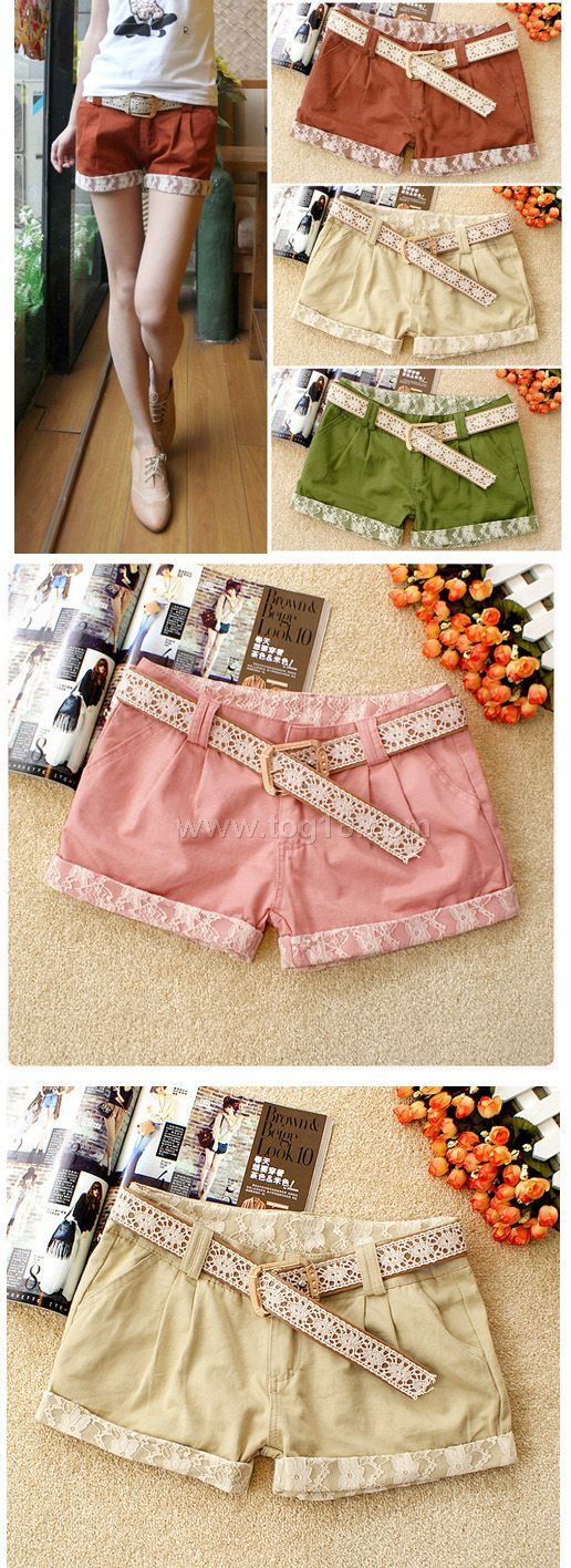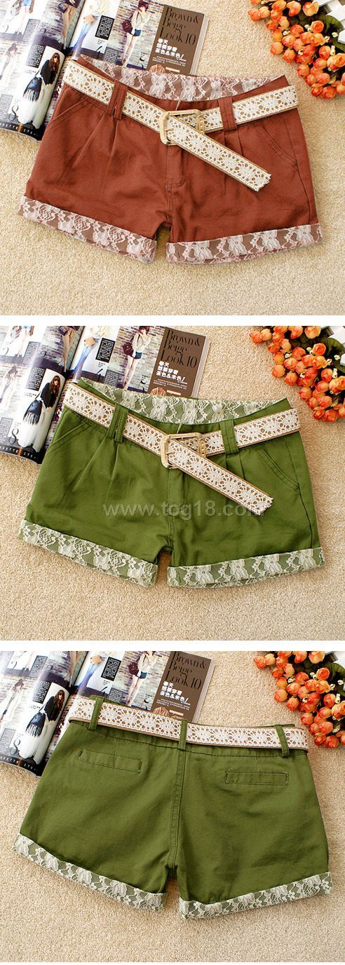 2012春夏新款韓版女裝全棉蕾絲花邊中低腰熱褲短褲(送腰帶)