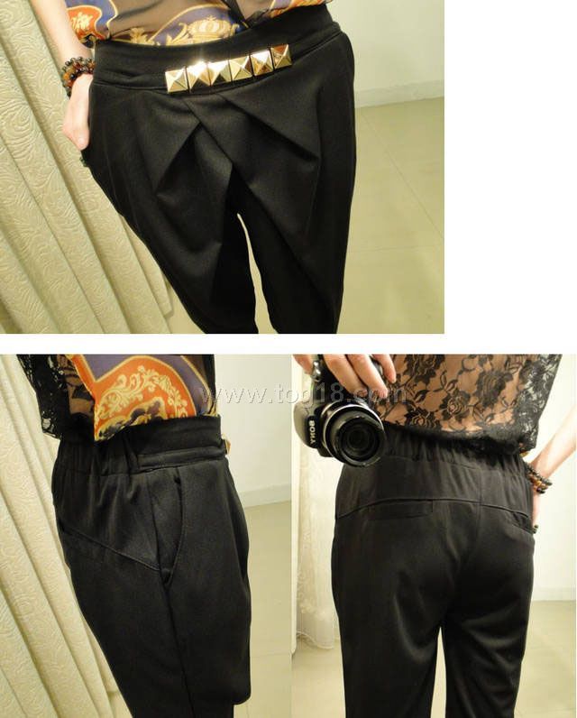 2012新金属铆钉褶皱松紧腰显瘦休闲裤小脚哈伦裤