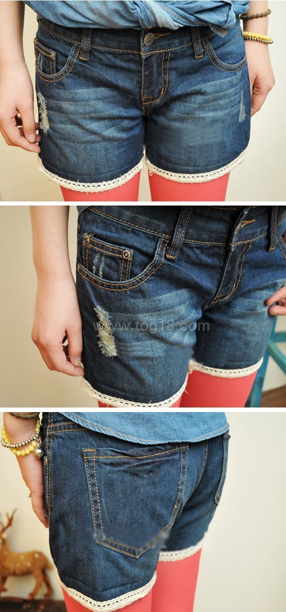 2012初夏新款蕾丝脚口 两种穿法 磨破水洗牛仔短裤/热裤女