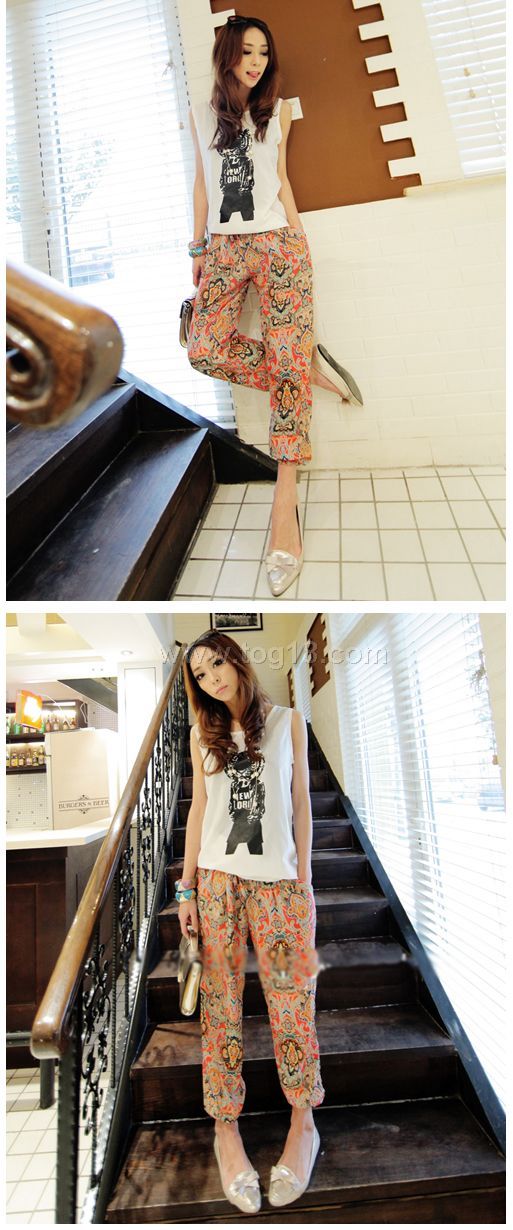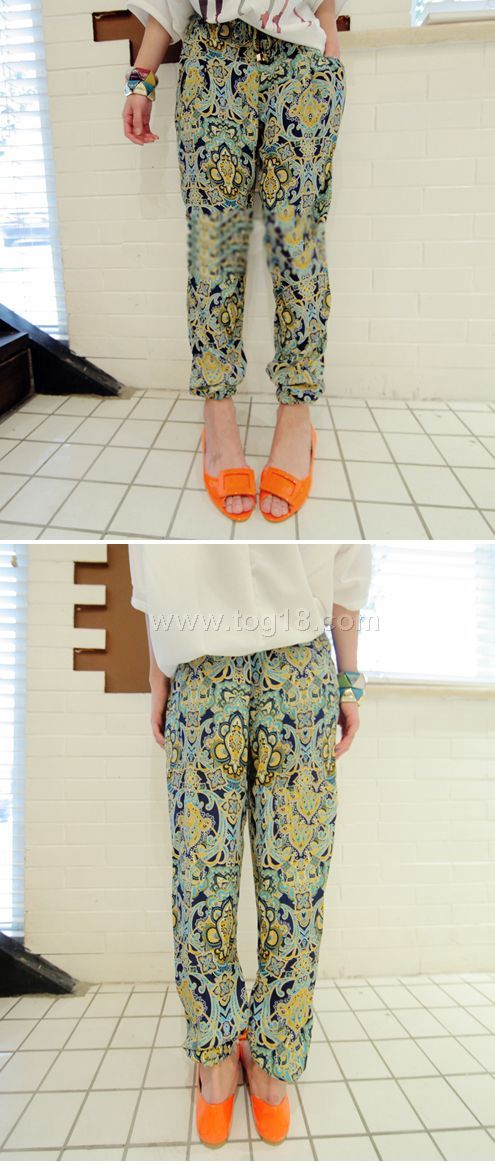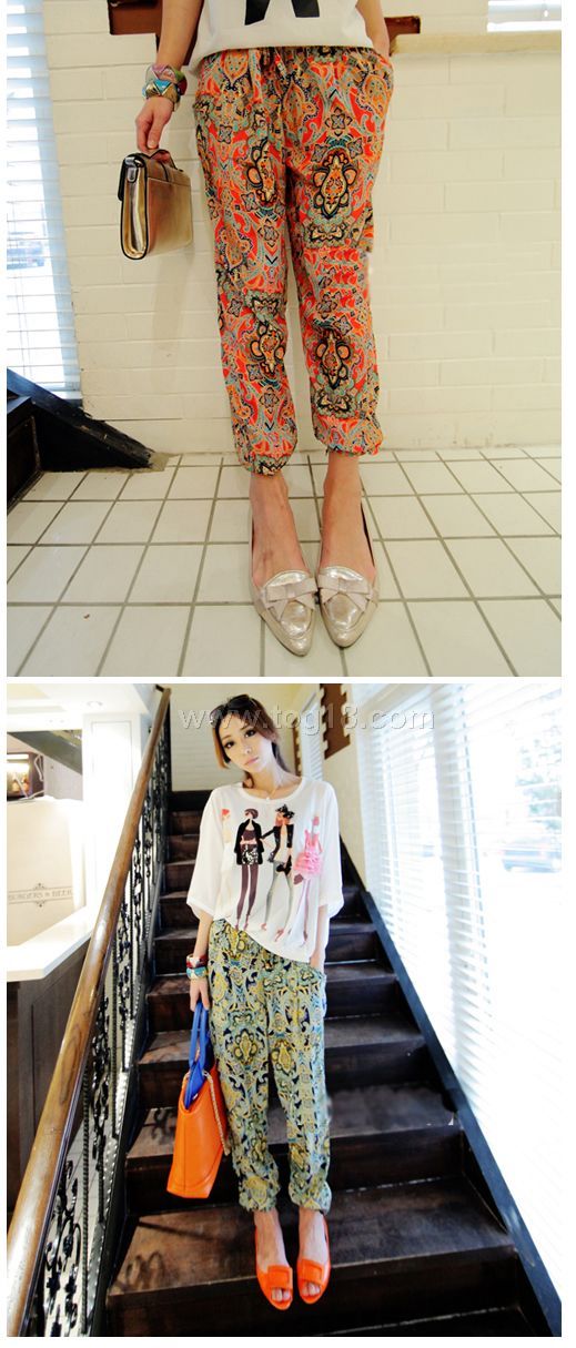 2012新款慵懒而随意 异域民族风花色 松紧收口 舒适宽松阔腿裤
