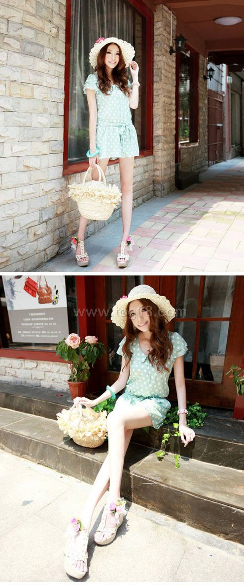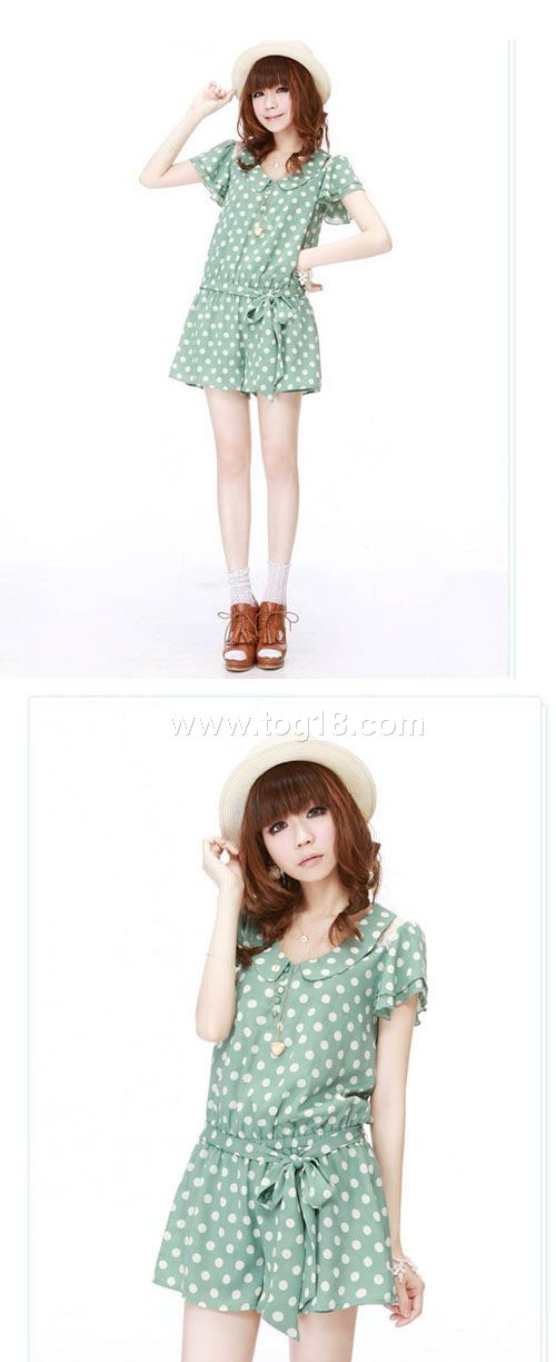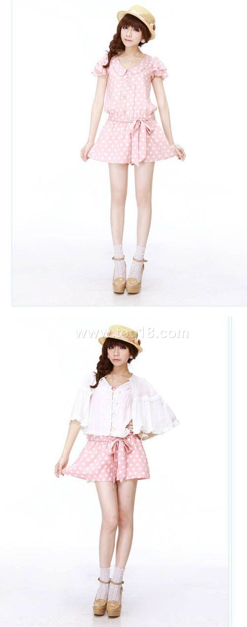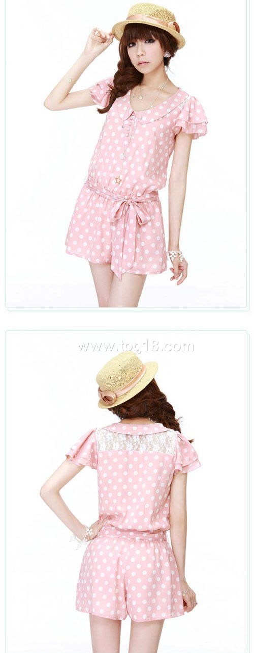 2012夏装新款女装波点蕾丝松紧腰大码连体裤 短裤