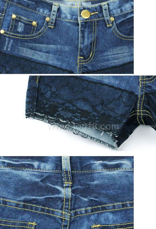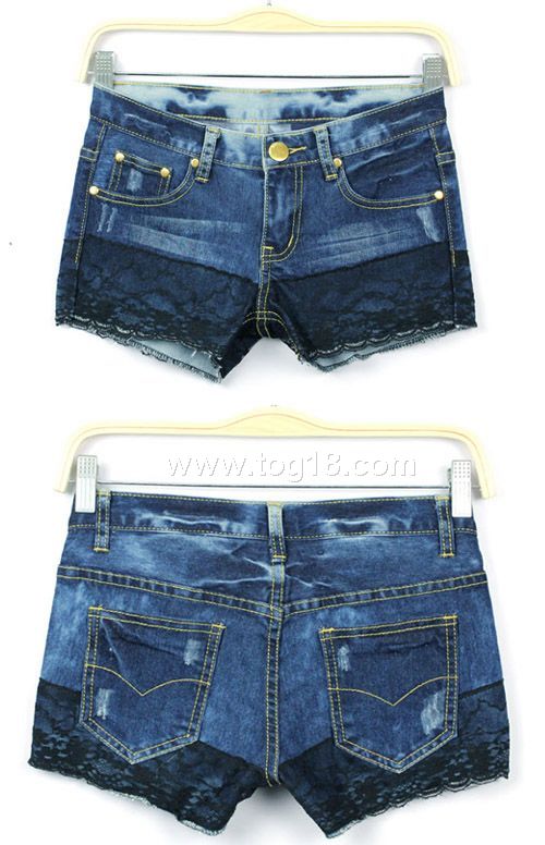 2012新款韩版 蓝色 经典 雪花 蕾丝花边牛仔短裤热裤