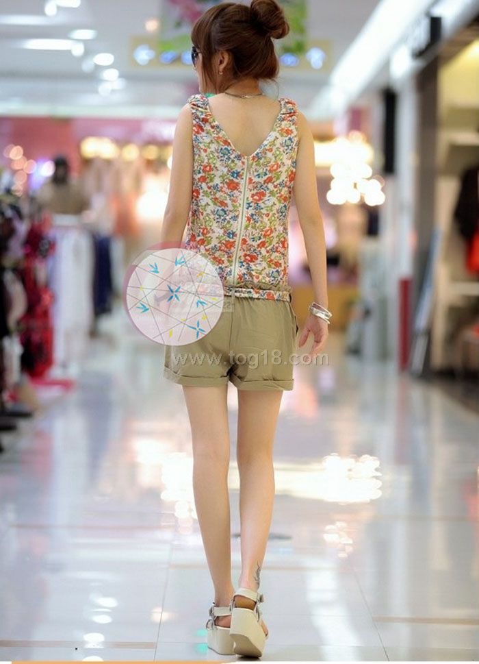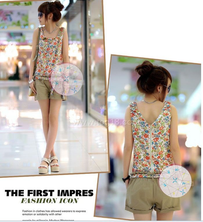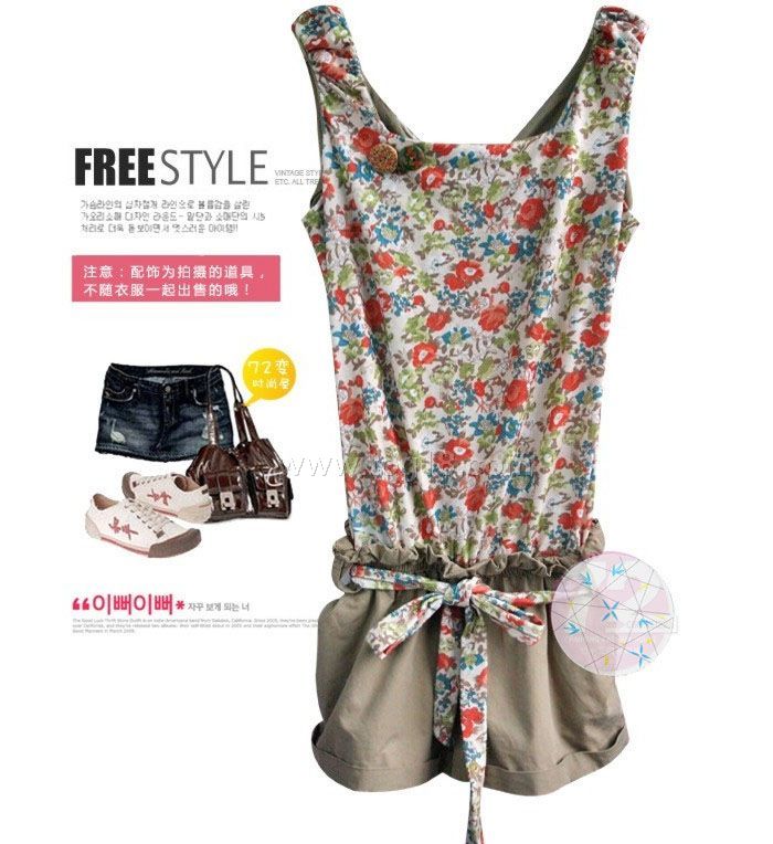 2012新款夏装 碎花背心 无袖连体裤短裤 腰带